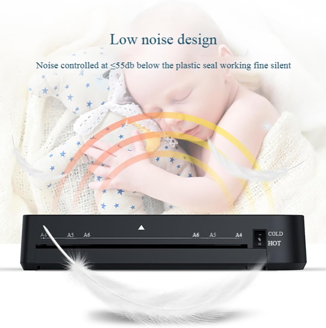 Overplastic width: 230mm (A4) Plastic size: A4~ 3 inches Heating method: quartz heating wire Constant temperature range: 115~ 145 ° C Power supply:~ 300W Net weight: x900g Product size: 320 * 100 * 62mm Plastic seal thickness: 0.1~ 0.5mm Overmolding speed: 320mm/min Warm-up time: <2 minutes Film withdrawal method: ABS toggle one-button film withdrawal AC220V-240V power supply voltage: (US standard AC110V-120V) Noise: ≤ 55dB