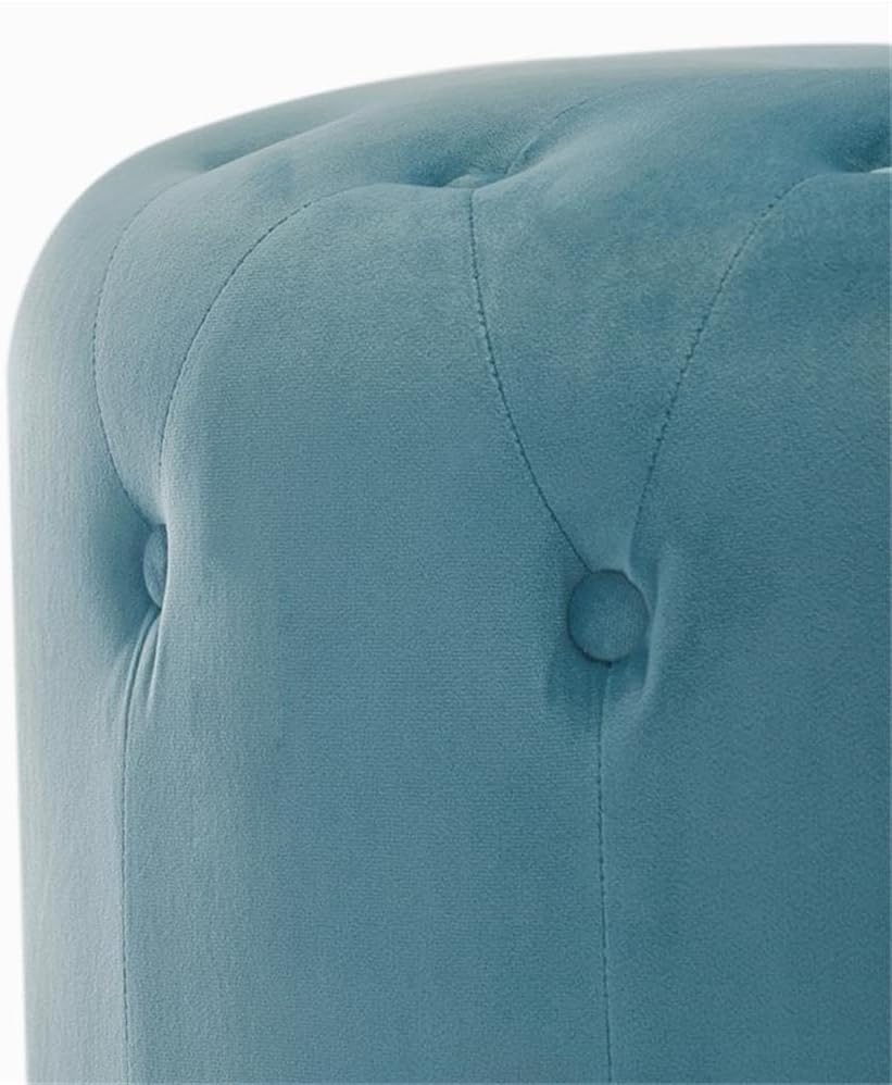 Add some luxury to your daily routine with the Adele Tufted Ottoman. This round ottoman offers a fresh take on classic style. The eye-catching round gold base comes together with an elegant pop of color from the cozy upholstery to create a sweet and stylish centerpiece for any room. Not only will this versatile ottoman look great in a living room as an accent piece, but it also provides extra surface and seating space. Use it as a tufted footrest, or place a tray of snacks on it for a fun get-together. Need some extra seating? The rich velvet pouf doubles as a comfy seat, too. This footstool is also compact enough to move between rooms and easy to clean. Adorable and chic, it makes any living room, office, or bedroom more luxurious.