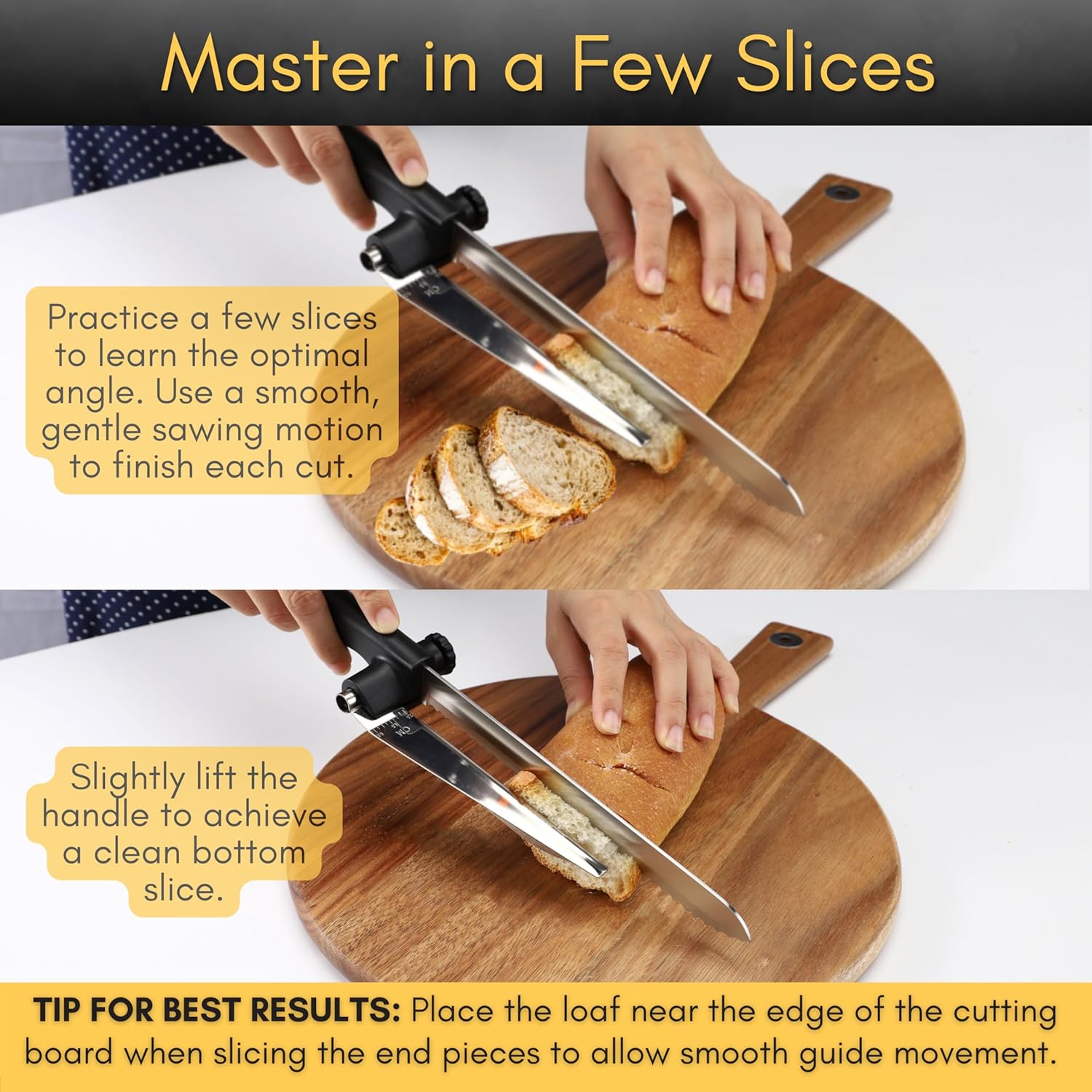 | Included Components | 3-pc Bread Slicer set includes 8" Bread knife with Slice thickness Guide, Knife Sharpener, Bread lame with 5 extra blades |