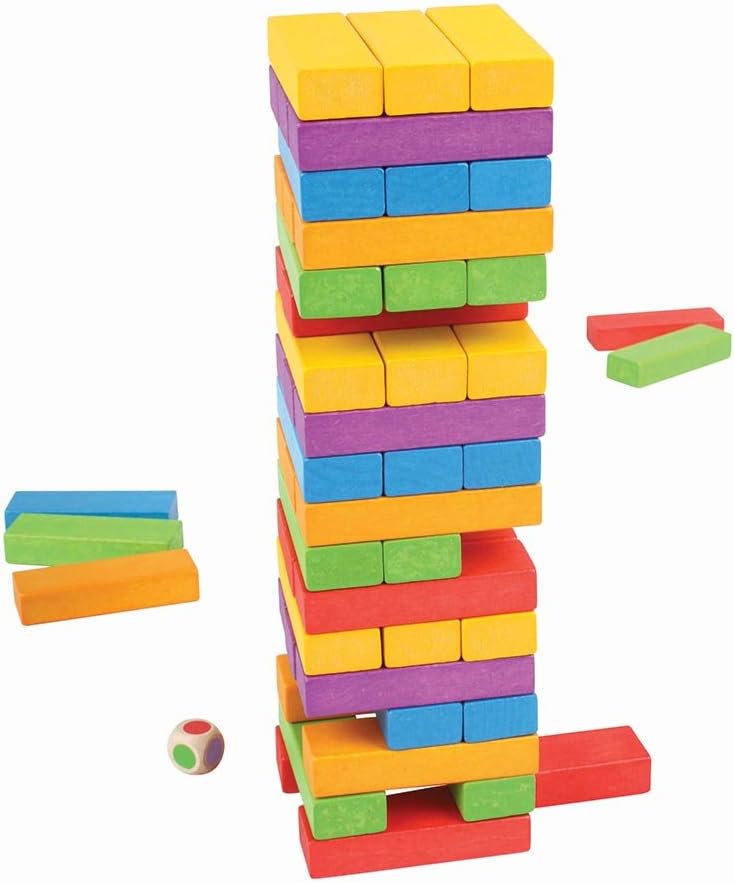 A colourful wooden Stacking Tower Game thats fun to build and even more fun when the blocks come tumbling down! Stack the tower with three blocks per layer and then take it in turns to remove a block - without causing the tower to come crashing down! A thrilling way for youngsters to develop hand-eye coordination, dexterity and colour recognition. Made from high quality, responsibly sourced materials. Conforms to current European safety standards. Age 3+ years. Height: 280mm, Width: 90mm.