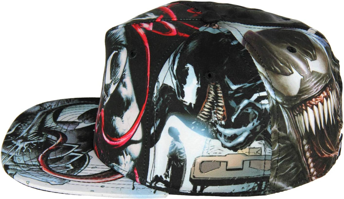 Edward Charles Allan Brock decided to visit Out Lady Saints Church. Once inside the church, he was caught by surprise when the symbiotic alien costume, which had earlier been discarded by Spider-Man in the church bell tower, attacked and bonded with him. The symbiote merged mentally and physically with Brock, whose bubbling hatred for Spider-Man was equaled by the symbiote’s. Calling themselves Venom they vowed revenge against Spider-Man. These 100% Officially Licensed Venom cap features a different iconic image of Spider-Man's arch enemy printed on each of the 5 panels on a classic flat bill design. Perfect gift idea for the Marvel Venom fan in your life.