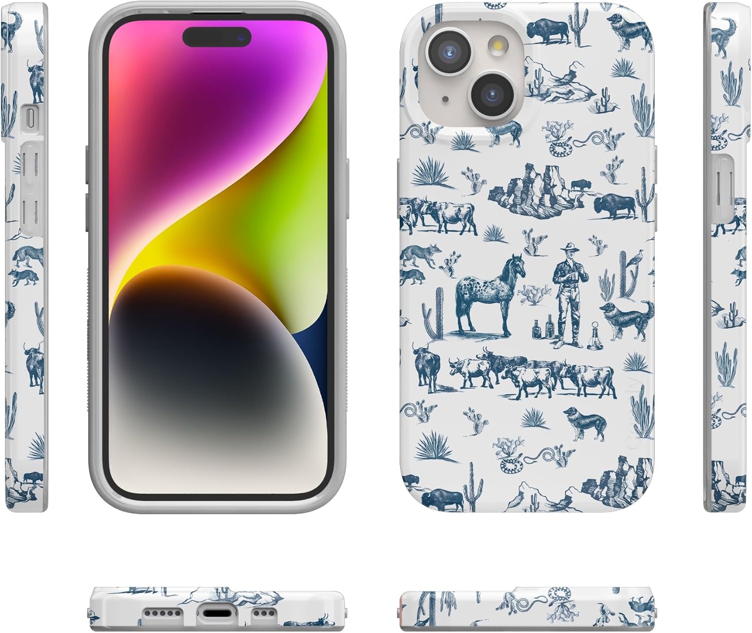 The Wild West Adventure Desert print is for those who love to let their hair down but look cute doing it! With a soft white base and western-themed characters standing out in cool blue, it balances both a thrill for adventure and a casual attitude. This eye-catching yet serene rodeo pattern features a rustic design that is guaranteed to make your phone stand out in a crowd. It's a beautiful and unique accessory to add to any phone and a perfect way to show your wild side without compromising protection. Its powerful drop protection prevents against sudden drops, whether from a slip down the canyon or a ride on the bull. You can order it as part of the Classic Collection, or the Bold Collection for several generations of iPhones. If you prefer to use a Samsung, this case is also available for six different versions of Samsung phones.