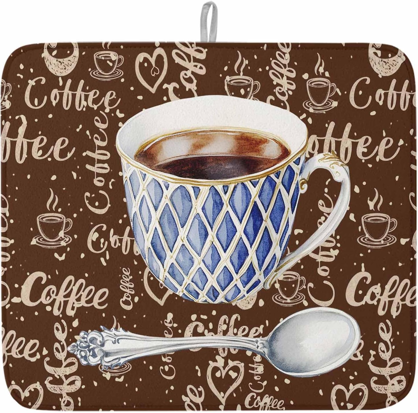 ✪Super Absorbent Dish Drying Mat Kitchen Counter MatChoose our coffee kitchen drying mat to keep your countertops clean and say goodbye to tea towels and worn dishcloths!Specification:Material: Absorbent MicrofiberDimensions: 16x18 inches/18x24 inchesWater AbsorptionThe retro microfiber dish drying mat is made of 3 layers of material, the surface is made of water-absorbent polyester material, and the composite sponge material in the middle can quickly absorb water. absorbs all the moisture left in your cups and plates,You can place the dish directly on the mat or use dish mat with the drain rack. Slide this brown drying mat under your utensil rack in place of a plastic drain board to keep your sink area dry and tidy.DurabilityThe packaging is neat, and the thread is not easy to fall off. Coffee cup kitchen counter mat won't shrink even after washing, making placemat durable.The lanyard design can be hung without taking up space, and the cushion is soft and foldable for easy storage. Once your dishes are dry, fold up the baking sheet mat and store it in a drawer, ready for the next time you need dish drying rack mat.Protection PadThe thicker material is not only super absorbent, coffee machine mat can also be used as a protective pad to protect expensive dishes and marble countertops.Place it under your appliances (blenders, coffee makers, etc.) to protect your countertops from scratches. Can also be used as a countertop potholder to insulate from high temperatures.When placing tableware (dishes, cups) on the mat, tapetes para secar platos prevents the tableware from being smashed. The exquisite printed pattern makes the draining mat protect the tableware, but also can be used as a placemat to decorate your dinner, perfectly matching your tableware.✿Care Instructions:Machine washable and hand washable, dry in the shade. Do not bleach.