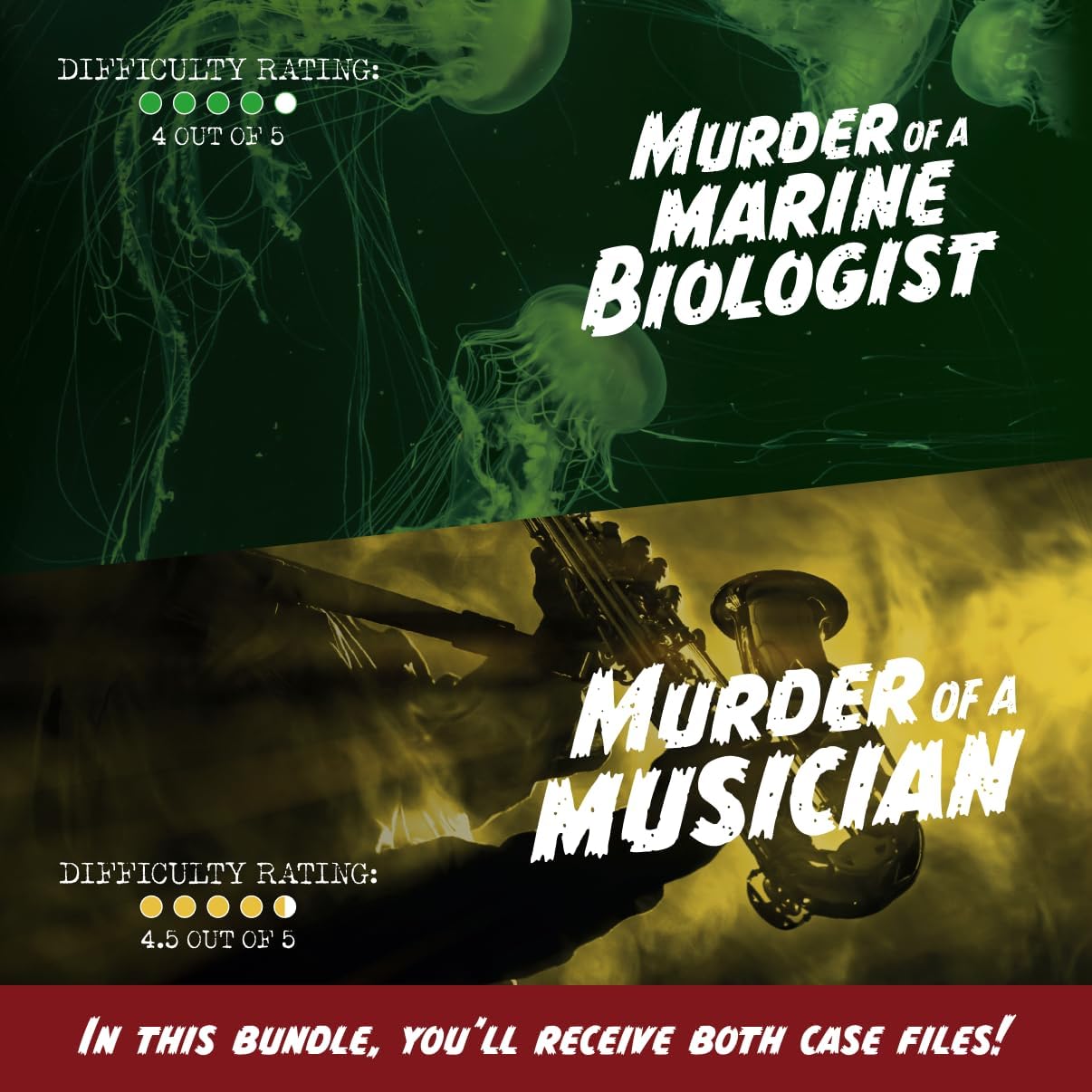 Embark on a thrilling detective journey with this bundle of two case files: "Murder of a Marine Biologist" and "Murder of a Musician". Start with the easiest case and work your way up to the most challenging one. Each case file offers a fresh and engrossing storyline for you to solve. The estimated completion time for each case is between 2 to 3.5 hours, depending on your detective skills. Get ready for a captivating experience as you bring justice to the victims.