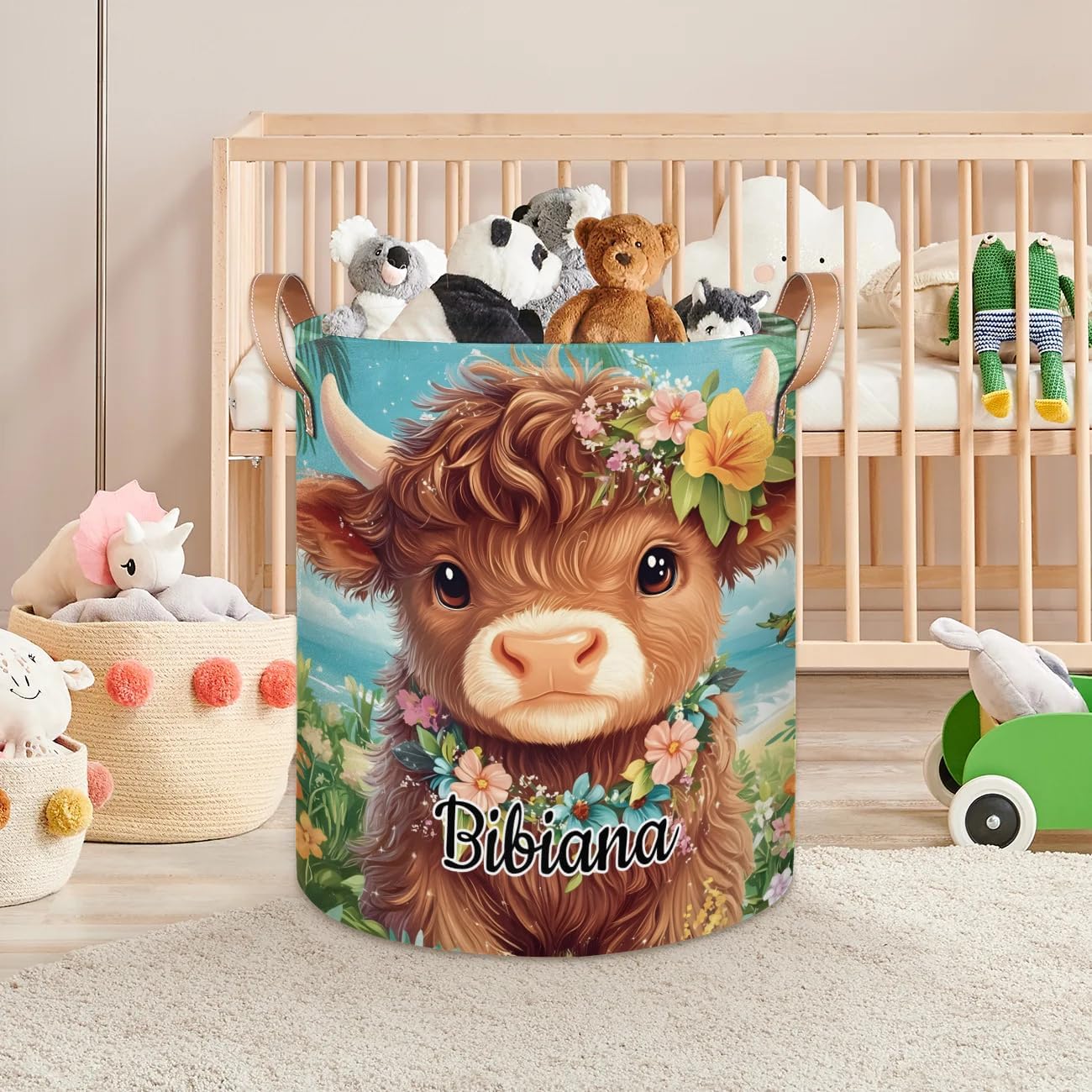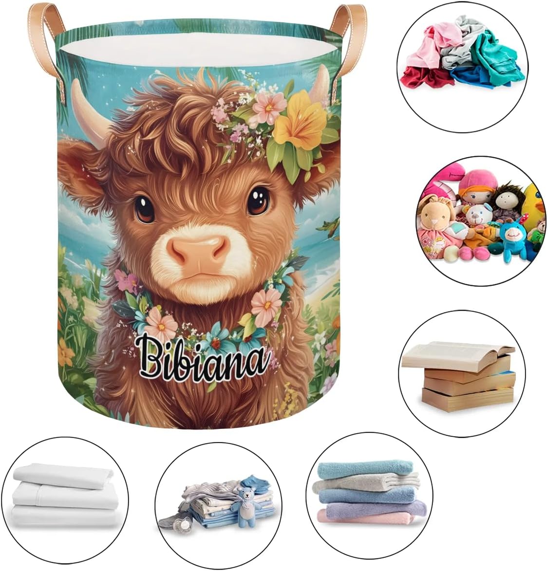 Product Includes:1 x Customized Name Laundry Basket.Product Size: 16x20.8 inches.Personalized Name Laundry Basket is made of high quality thick polyester fabric, lightweight, has padded large leather handles, durable and easy to carry;FOLDABLE DESIGN FOR EASY STORAGE: The laundry basket can be easily folded for space-saving use when not in use;MULTIPURPOSE STORAGE BASKET: Perfect for organizing kitchens, living rooms, bathrooms, closets, game rooms and cars, college dorms, campers, apartments, hotel use, baby nurseries and utility rooms. Canvas laundry baskets help with clothes storage, bathroom supplies storage, home textile storage, children's toys storage, pet toys storage, baby supplies storage and other uses use.Care: Hand wash only. Not machine washable. Take a damp cloth or sponge to the stained area. If there are more obvious stains, a little soap and water can be used to remove the stains, taking care to clean the soap well. Air dry naturally after washing. Do not bleach. Do not use brushes or other things to scrub the basket vigorously.