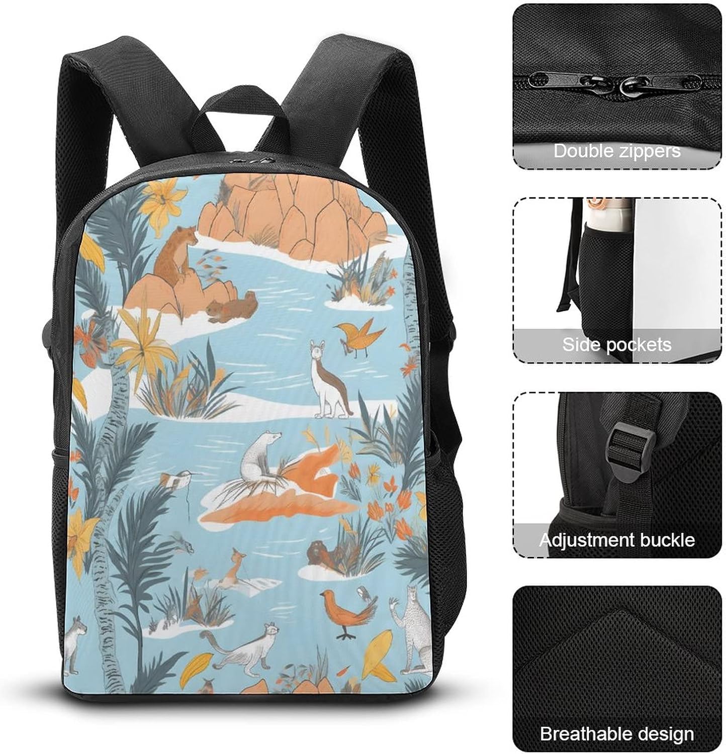 Measuring 17 inches and made with 600D polyester, it is designed to ensure the quality and durability. The backpack features adjustable reinforced shoulder straps for a comfortable fit and reduced pressure on your shoulders. The reinforced anti-wrinkle details at the bottom ensure that the backpack is firm and protected, and the side pockets on both sides hold water cups, umbrellas, and other items, making it perfect for travel, and leisure activities. Designed with a reinforced bottom and strengthened reinforcement, this backpack is perfect for everyday use. The Backpack is available in black and is suitable for professionals, and anyone who needs a durable and versatile backpack for their daily activities. It can hold laptop, books, clothes, lunch bag, suitable for daily and leisure day trips, sports events, travel, picnics, and more.