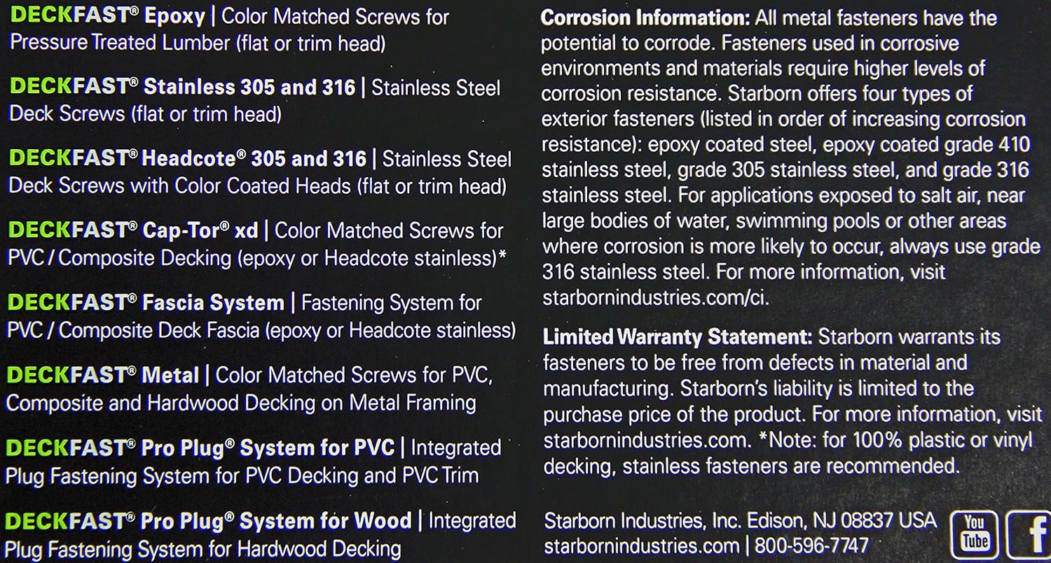Cap-Tor xd screws are specifically designed to provide a clean, smooth and uniform finish in PVC and composite decking. They also work equally well in traditional composites. Cap-Tor xd is approved for use with all major PVC and Composite deck brands. Cap-Tor xd screws feature extra deep star drive recesses, undercut heads, reverse threads, tri-lobular shanks, Type 17 auger tips, and are available with a color matched, epoxy-based polymer resin coating.