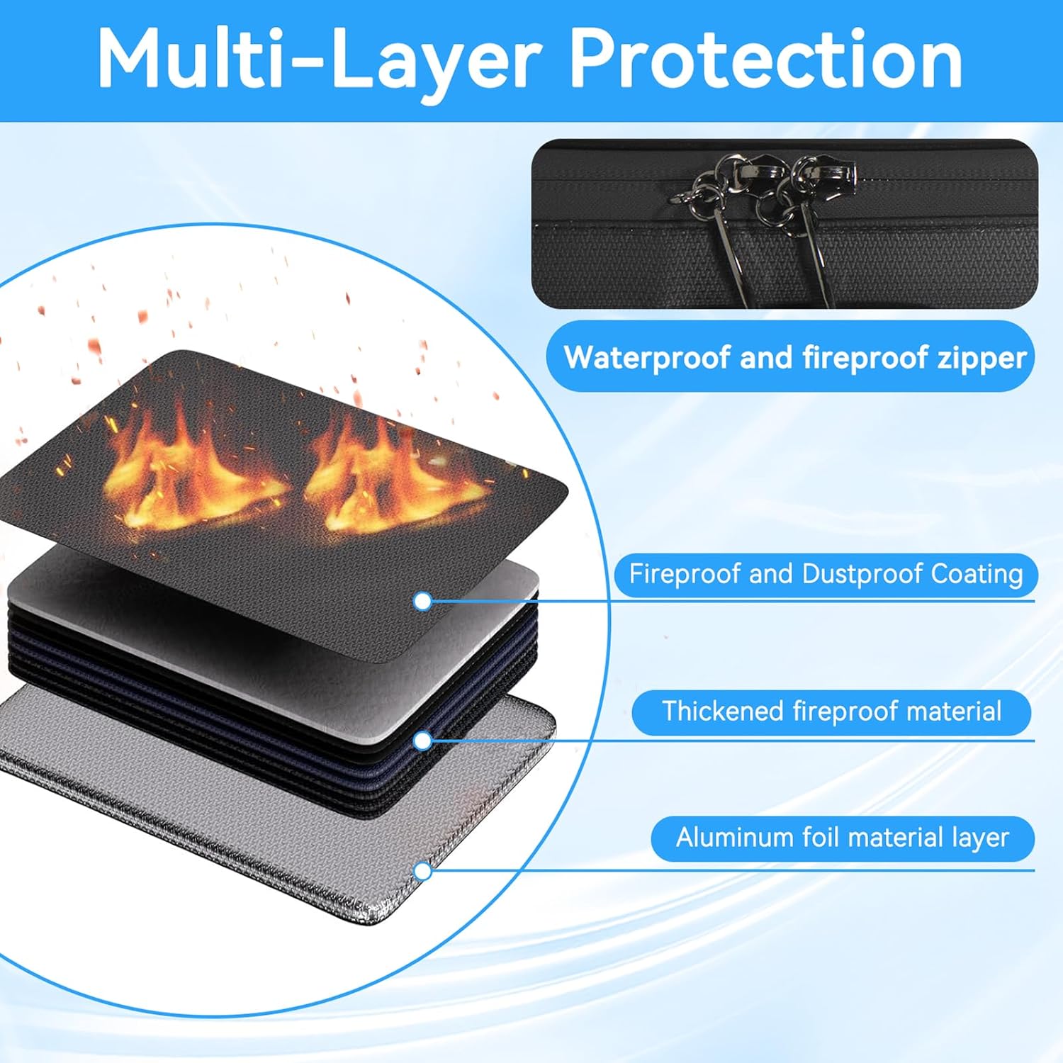 | Material Type | SGS TEST(UL94 VTM-0 Certified) Non-itchy silicone coated fiberglass fireproof cotton and aluminum foil |