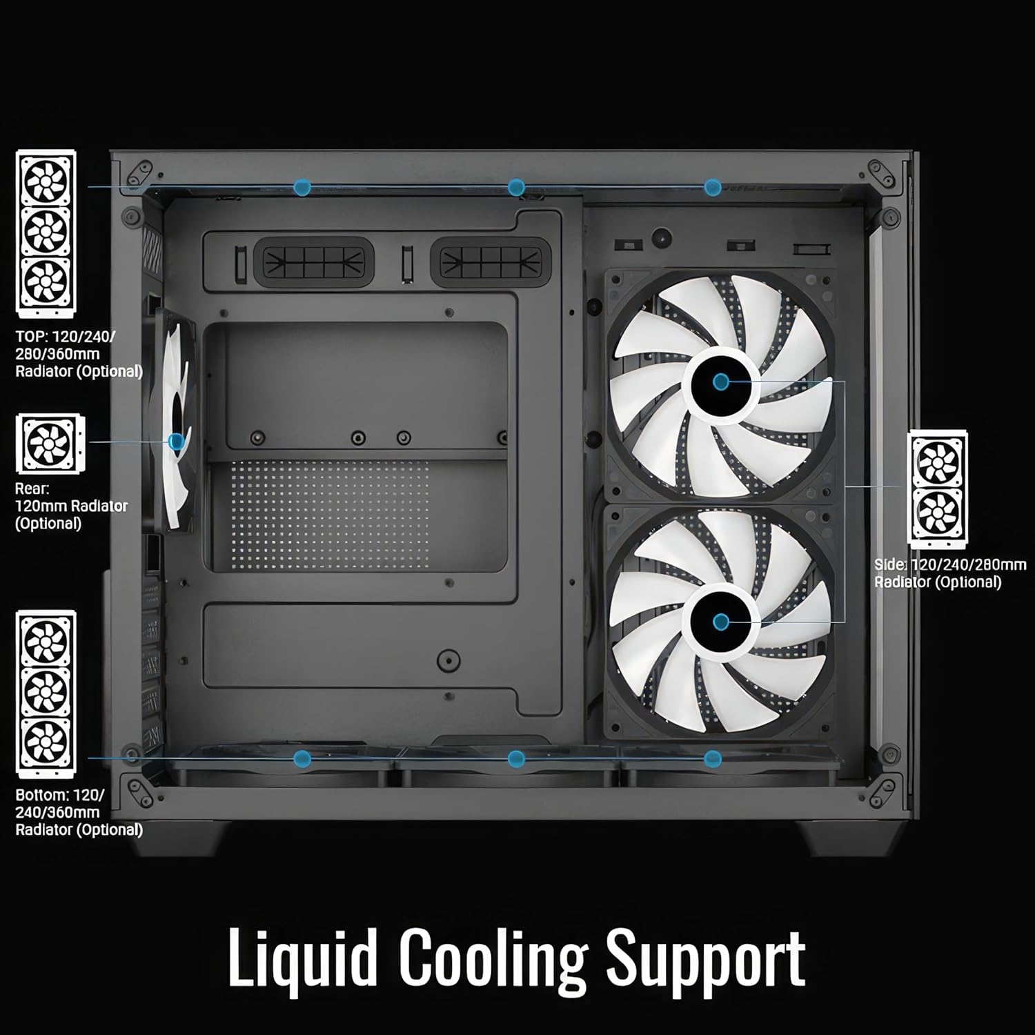 | Compatible Devices | ATX motherboards, standard 3.5-inch hard drives, water cooling systems, air coolers, and gaming-oriented components |