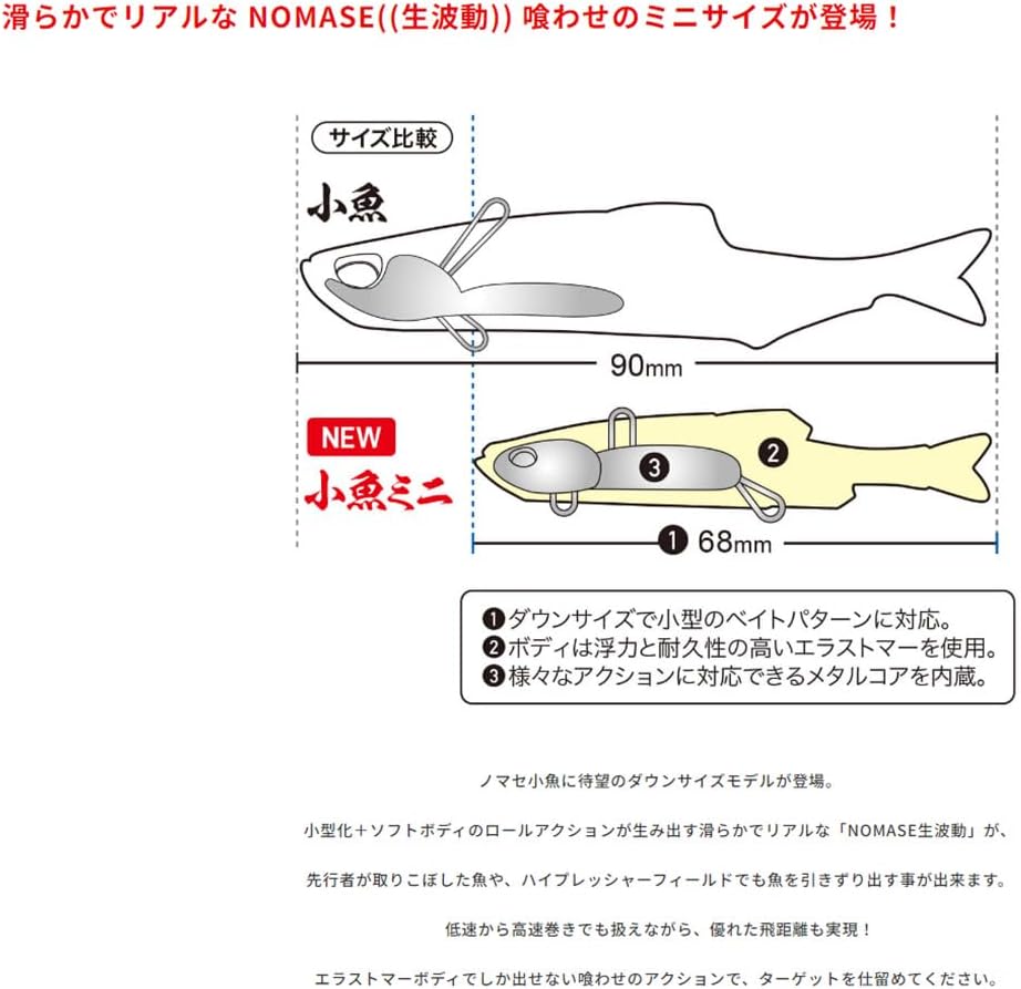 The long-awaited down-size model for the fuss-free minnows. The smooth and realistic "NOMASE raw wave" produced by a smaller and soft body roll action allows the predecessor to pull out fish in high-pressure fields. It can be used for slow to high speed winding but also has excellent distance. Tackle targets with a grooming action that is only available in an elastomer body. The down size of 2.7 inches (68 mm) makes it compatible with small bait patterns. The body is made of a highly durable elastomer material that is buoyant and durable. The interior is equipped with a metal core, so it can handle a variety of actions.