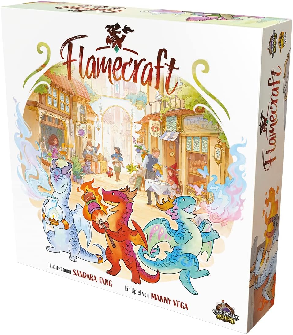 Product Description A city has awakened in the magical realm. There is coffee and cake from dragons, handmade! Compete against each other and enchants the city. As a flame keeper, you have the gift to communicate with the dragons. Who of you gets the most glory and tames the flame? Manufacturer Contact Information Manufacturer Name:Cardboard Alchemy; Manufacturer Address: 2272 Malden Street, 91304, Westhills, US; Email Address: www.cardboardalchemy.com
