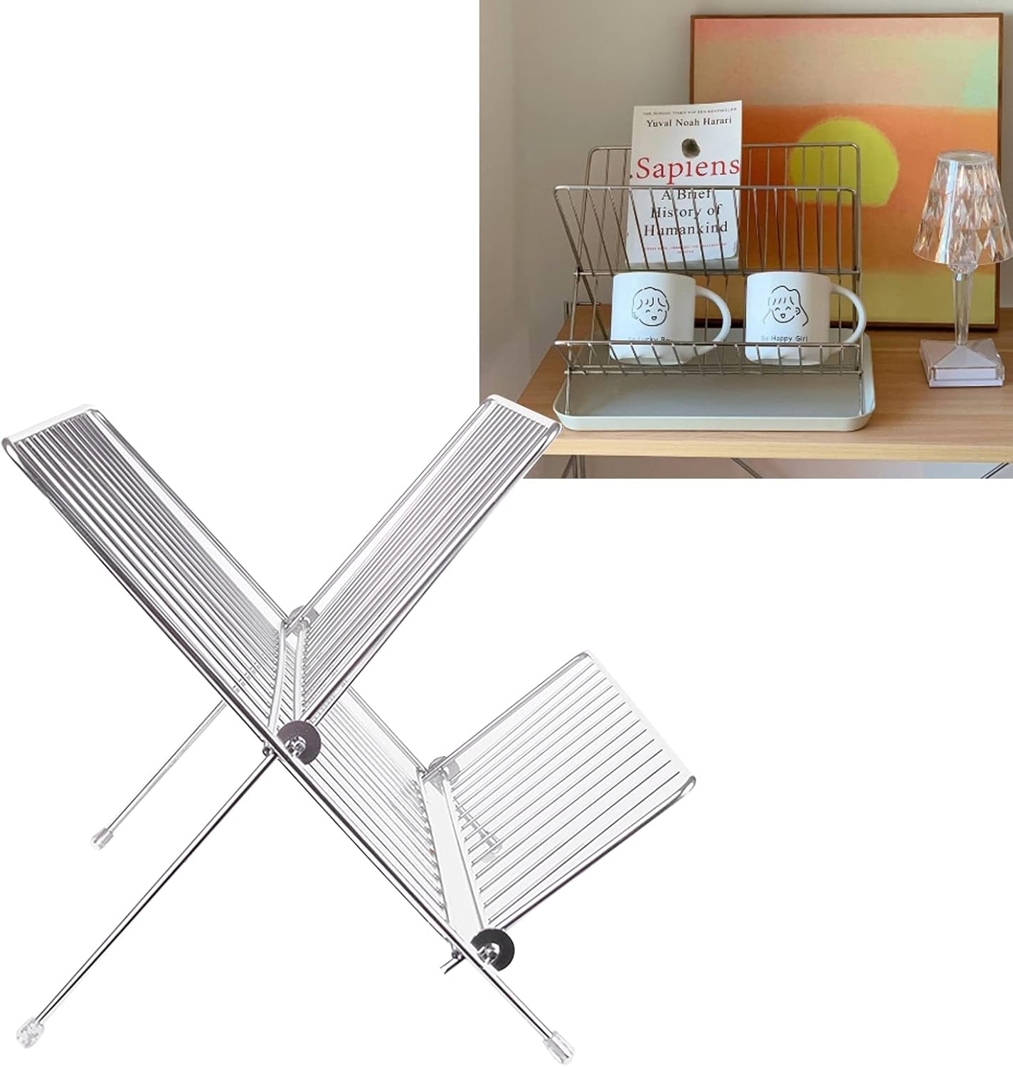Specification:Item Type: Foldable 2 Tier Dish Drying RackMaterial: Stainless SteelGross Weight: 600g / 21.2ozSize: 28x33cm / 11.0x13.0in(Unfolded)Package List:1 x 2 Tier Dish Drying Rack
