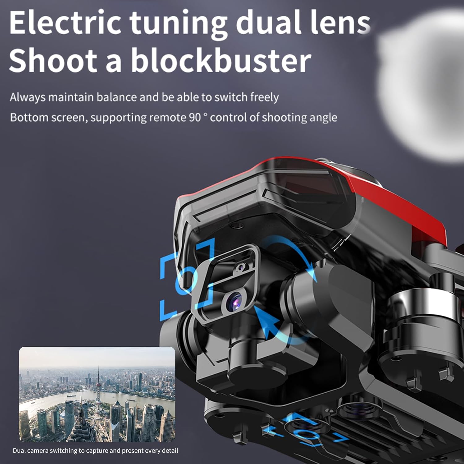 Specifications: Item Name: Remote Control Drone Main Material: ABS Frequency: 2.4GHz Drone Battery: 3.7V 1800mAh battery Remote Control Battery: 3*AA battery (not included) Charging Time: 80-100 minutes Flight Time (Single Battery): About 8 minutes Remote Control Distance: 100 meters Maximum Flying Speed: 10km/h Maximum Ascent Speed: 3km/h Operating Temperature: 0-40℃ Camera Mode: FPV Camera: 4K Dual Camera Front Camera: Photo Resolution: 3840*2160P; Video Resolution: 3840*2160P Bottom Camera: Photo Resolution: 3840*2160P; Video Resolution: 3840*2160P Compatible System: Andriod 5.0 or above, IOS 9.0 or above Color: Red Size: 7*7.5*13cm (Folded), 33*33*7.5cm (Unfolded) Package Information: Package Size: 27.5*8.5*18.5cm Package Weight: 390g Note: Please read the instructions carefully before use. If you are a beginner, it is recommended to have assistance from an experienced adult. Battery caution: Do not overcharge or over-discharge. Do not place it under high-temperature conditions. Do not throw it into the fire. Do not throw it into the water. Package List: 1 * Drone 1 * Remote Control 1 * 3.7V 1800mAh Battery 4 * Spare Blade 4 * Protective Frame 1 * Storage Bag 1 * USB Charging Cable 1 * Screwdriver 1 * Manual