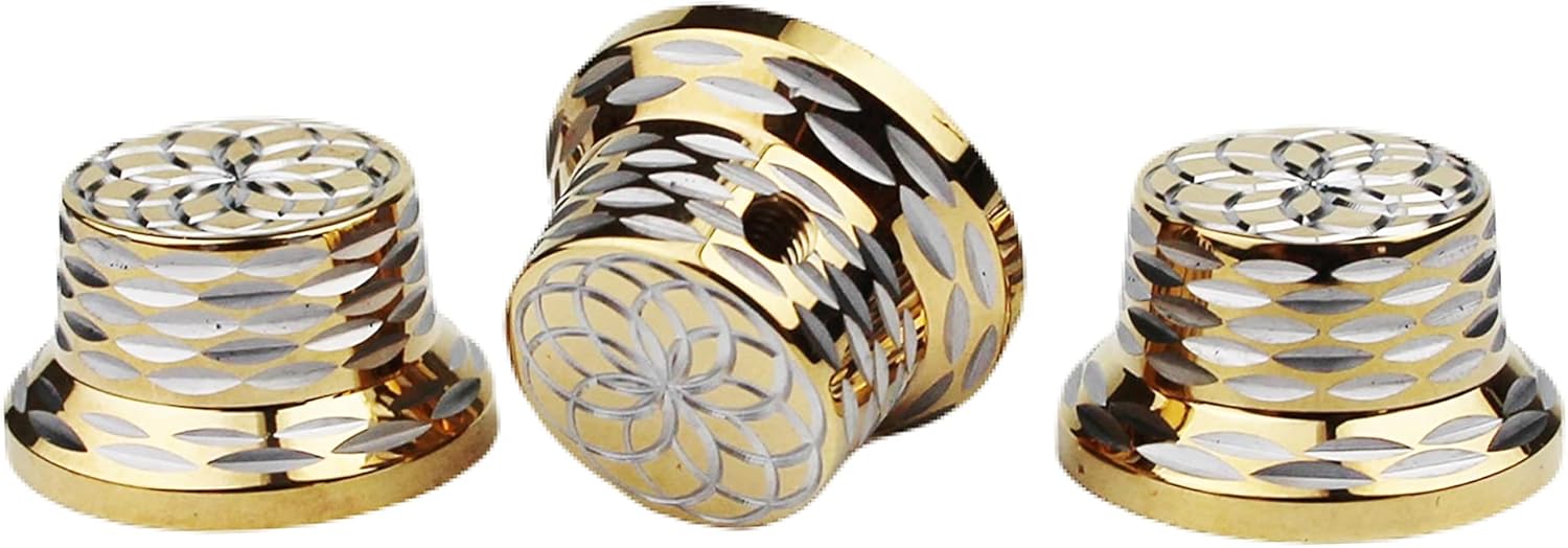 Features: - Fits any guitars or basses which have Split Shaft Pots with diameter 6mm or less than 6mm. - Fits most electric guitar / precision bass instruments. - Material: Stainless Steel. Durable and long-lasting use. Simple and quick to install. . - Good weight and feel to replace your old or dirty knobs. - Control the electric guitar/bass Tone & Volume. - Easy Replacement or Upgrade. - Special lotus flower pattern bell top hat style, eye-catching.