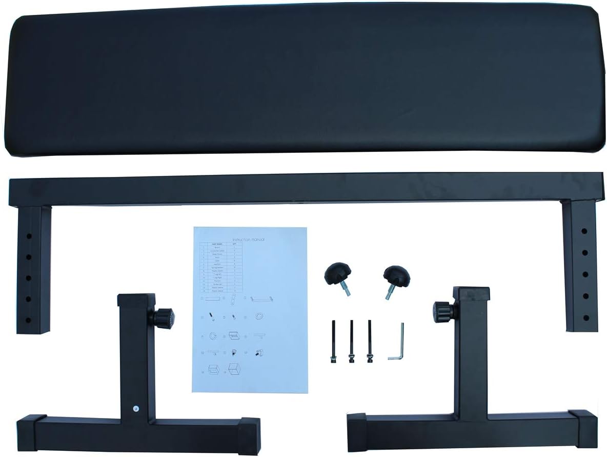 The flat workout bench is a safe, simple and effective tool for nearly any exercise program. This workout bench features a powder-coated steel frame, with a thickly padded surface for strong, durable and comfortable use. The flat workout bench is ideal for not only for dumbbell exercise but is also perfect for tubing or band exercises and most body weight exercises. Takes only a few minutes to assemble and is built for years of use.Product Specifics➤Net Weight/Gross Weight: (20.4LB/22LB)➤Weight Capacity: 300LB➤Package Size: 44.5x14x4.1 INCHES➤Product Size: 42.9x16.8x20.9 INCHES➤Pad Size: 42.9x10.8 INCHESHurry up, and get one of the limited weight bench now.