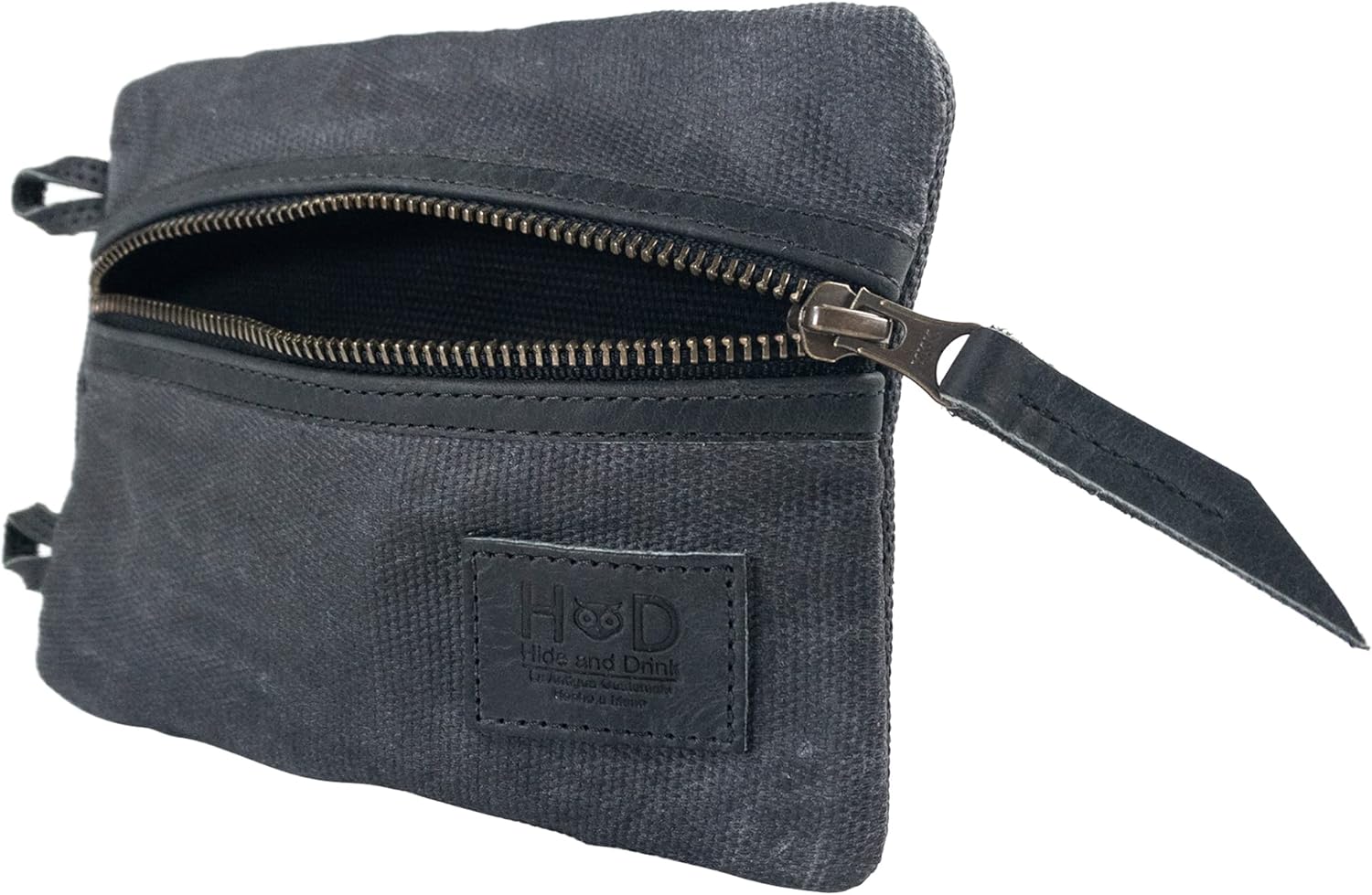 GREAT FOR CAMPING & MORE: This Multitool Pocket Pouch is handmade from durable, waterproof waxed canvas and full grain leather. This compact pouch features a zippered pocket for small personal items such as coins, change, cards, and headphones and is also great for storing tools, nails, screws, and other small hardware while working on construction projects. This Multitool Pocket Pouch also includes four sleeve pockets with space for your field notes, flashlight, multitool, and more. HIDE & DRINK’S 101 YEAR WARRANTY: Each one of Hide & Drink’s rustic, durable leather and canvas products is made with care and craftsmanship, with every item handmade to the highest standard. Our confidence in our products knows no bounds, so we include each product that you purchase with a 101 Year Warranty. We aim for nothing but 100% satisfaction when it comes to our products, so if you’re not satisfied, just get in touch with us and we’ll help you as quickly as possible. HANDMADE WITH THE FINEST MATERIALS: This product is crafted by hand using rugged, water resistant Waxed Canvas, combined with attractive, durable Full Grain Leather. The leather that we use is from the cream of the crop, the best leather around. After usage and time, the Full Grain Leather will attain a unique patina showing grace and age. FINELY HAND STITCHED: We are proud that each and every one of our products is handmade by expert local artisans of Pastores, Guatemala, a town wholly dedicated to the crafting of leather goods. Each item is hand cut and finished with a fine stitching method than not only looks good, but also makes for a durable finish that will give you a lifetime of use. Any loose ends are passed over with an open flame to ensure no unravelling during its lifetime. MAKES A GREAT GIFT: Hide & Drink swears by its excellent materials, and knows that this fine, rustic product that combines Full Grain Leather in unison with eye-catching, sleek Waxed Canvas will make an excellent gift for friends, family and loved ones. Built to last a lifetime, this item will make a thoughtful, long-lasting present for anyone and everyone. SPECIFICATIONS Dimensions Length: 7 in. Width: 0.7 in. Height: 5.25 in. Materials Waxed Canvas USE & CARE Over time and with use, the leather will assume a unique patina. If desired, condition with mineral oil or beeswax leather conditioner.