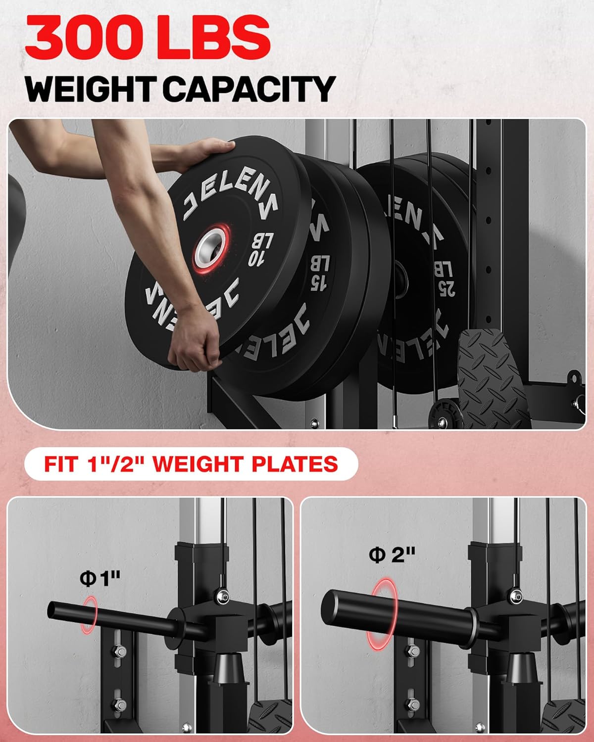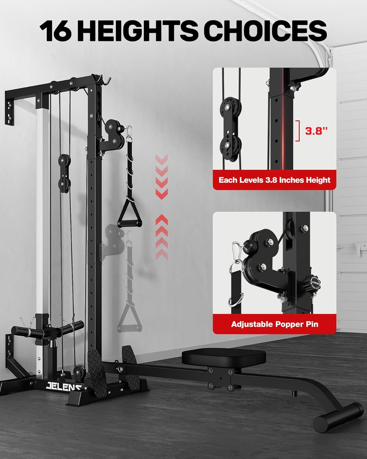 JELENS RC01 Foldable LAT Pulldown Machine with Adjustable seat, Wall Mount Cable Station with 16 Adjustable Positions, Cable Machine Home Gym 2 in 1, Functional Trainer with Rowing and LAT Pulldown