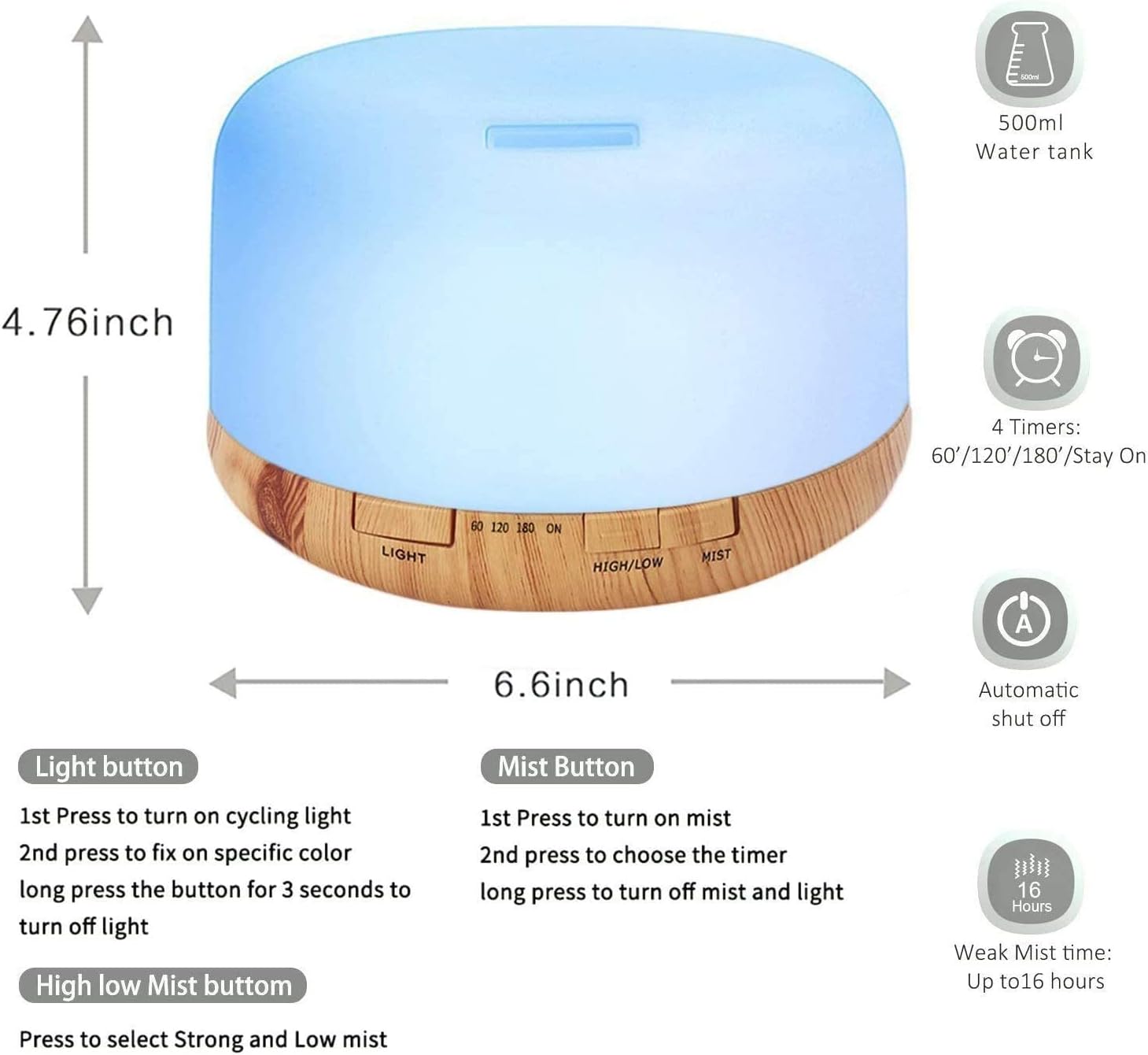 | Additional Features | Night Light, Quiet, Remote Control, Tim |