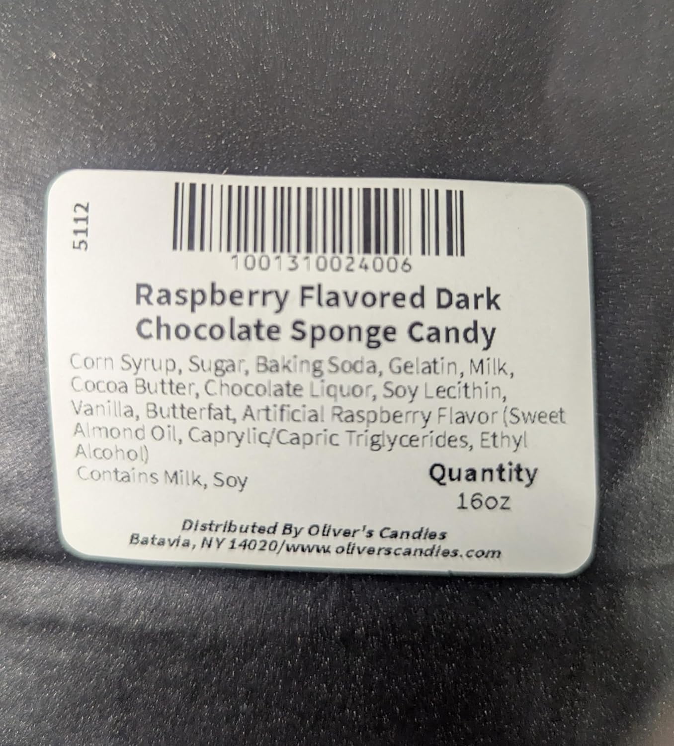 Sponge candy originated in Western New York, more specifically Buffalo, NY. Now growing in popularity across the nation! Sponge candy is a light, airy, crisp and crunch center covered in 2 layers of chocolate! Made using sugar, corn syrup and baking soda. A sweet flavor of cooked sugar that resembles an airy, light malt ball texture. This is a treat that once you try it, you will be back for more! **Please note: our labels contain the date our candy was made on - it is NOT an expiration date. We guarantee our products and make them fresh in small batches in our factory located in Genesee County, NY.