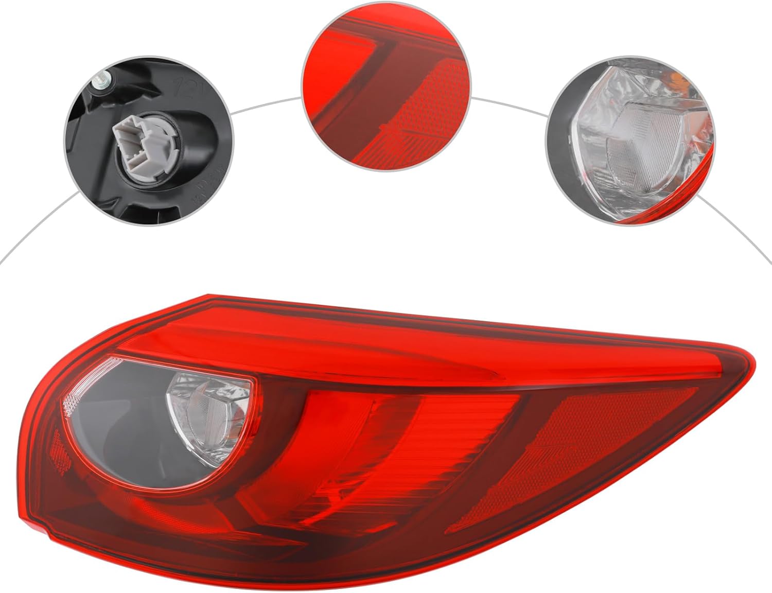 SpecificationOE/OEM Part Number: KA0G51160B, KA0G51150BInterchange Part Number: KA0G51160B, KA0G51150BManufacturer Part Number: MA2804119, MA2805119Applicable Models: For 2016Mazda CX-5Condition: NewMaterial: PP, PCProcess: Injection MoldingLens Color: Red, ClearHousing Color: BlackLight Source Type: LED, HalogenParking Light/Brake Light: Yes (Bulb Included)Turn Signal Light: Yes (Bulb Not Included)Sider Maker Light: Yes (Bulb Included)Reverse Light: NoPlacement on Vehicle: Left, Right, Rear Way of Use: Direct Replacement Assembly Method: ClosedVoltage: 12VEach Package Size: 53*19*18cm/20.87*7.48*7.09inEach Gross Weight: 1.2kg/2.65lbsEach Net Weight: 1.14kg/2.51lbsHighlightsBrand New, With Premium Materials Trouble-free InstallationDirect Replacement Exquisite CraftsmanshipEnhance Driving SafetyStylish Appearance Long Service LifeGood PerformanceStrict Manufacturing ProcessFits (As a Reference)For 2016Mazda CX-5OE/OEM Part Number: KA0G51160B, KA0G51150BPackage Included1* Right Side LED Tail Light1* Sealing Gaskets