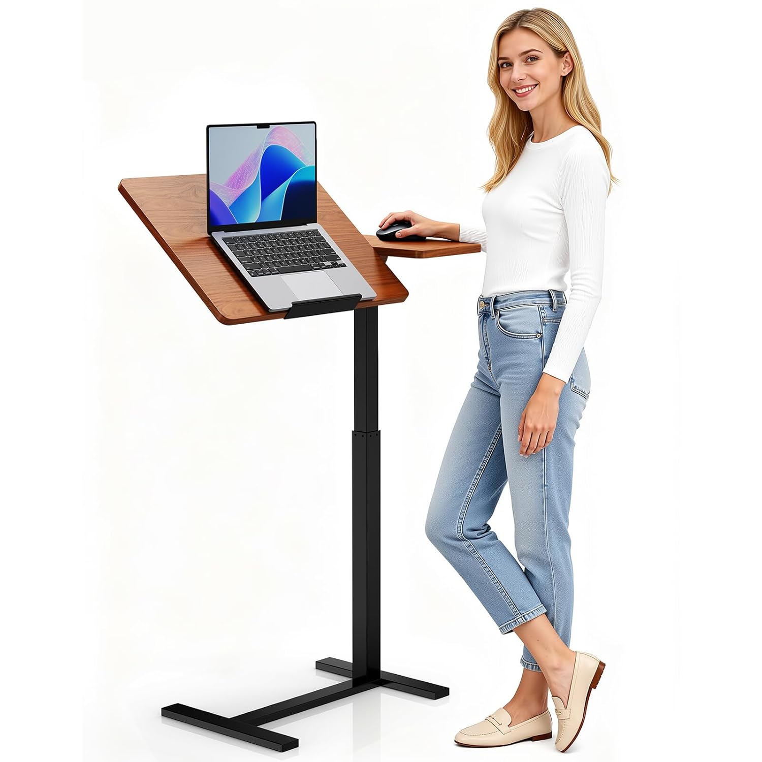 Model Name Table with Hidden Casters, Adjustable Pneumatic Mobile Laptop Computer Standing Desk