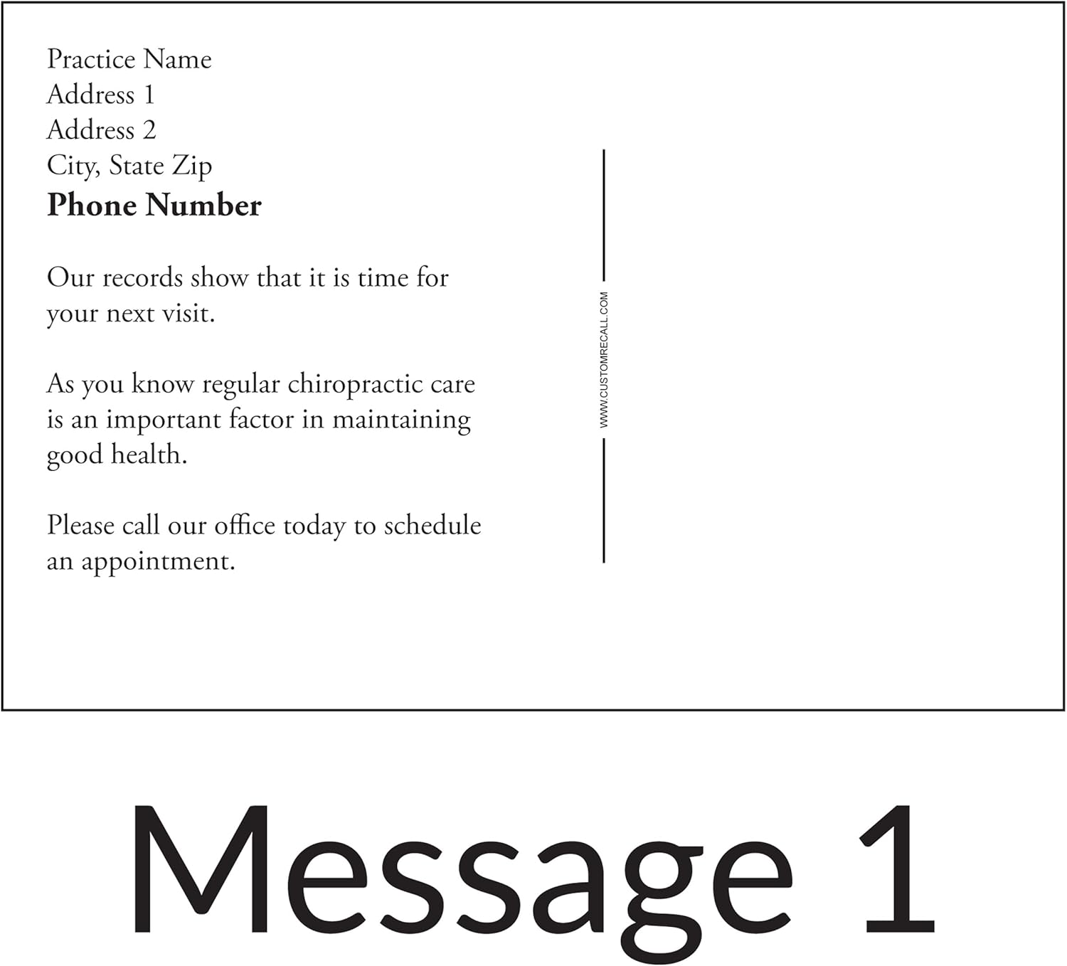 Premium appointment reminder postcards are a proven, low cost way to increase appointment bookings and patient loyalty. Our cards are printed on a thick 16pt card stock with a high gloss UV coating ensuring your cards get noticed. Easily personalize the front and back of the postcards for a great look premium card for less than you would pay for an ordinary reminder card.
