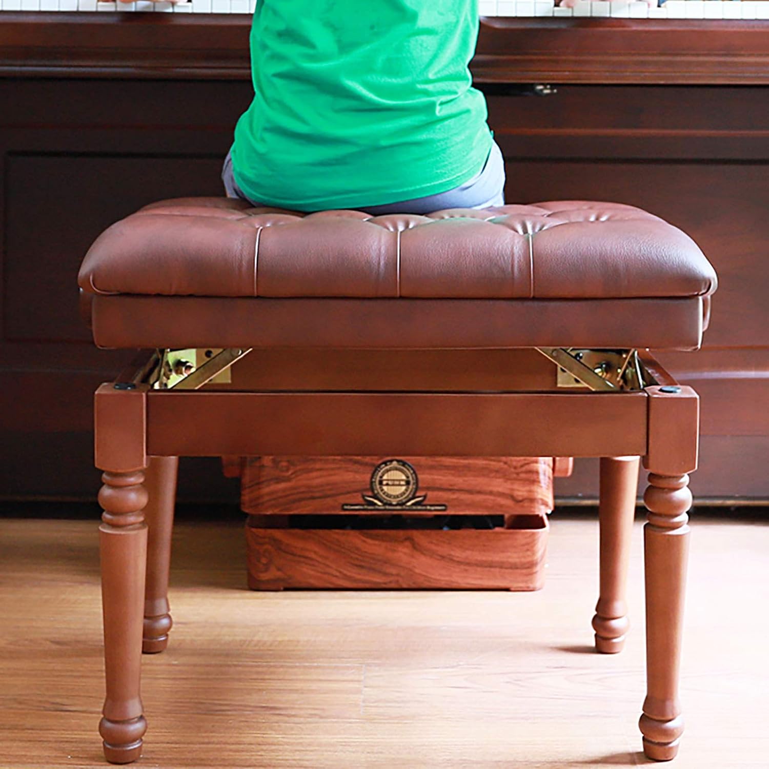 Our piano bench is meticulously crafted from premium wood and high-quality leather, ensuring durability and sturdiness. The soft, upholstered seat provides consistent comfort, even during extended playing sessions. Furthermore, the bench's height is adjustable for a perfect fit, allowing players to maintain the most comfortable and natural playing position, allowing them to fully unleash their musical talent. This piano bench combines practicality with style. Its unique and innovative design blends seamlessly into any space, instantly elevating its style. Its versatile design is suitable for a variety of settings, from dynamic orchestral ensembles, meticulous studio recordings, energetic live band performances, elegant concerts, music instruction in schools, to cozy moments of quiet contemplation at home. If you have any questions about this product, please feel free to contact me!