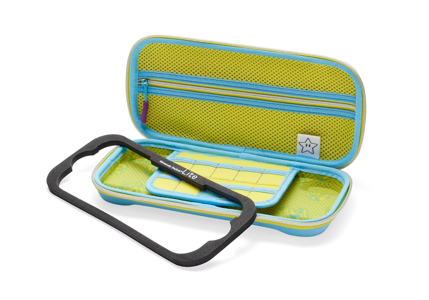 Take your Nintendo Switch - OLED Model, Nintendo Switch or Nintendo Switch Lite on the go with this sturdy compact case designed to fit the console in handheld mode. Inside you’ll find a felt lining, screen-protector flap with storage for nine game cards, logo tag and zippered mesh storage pocket. This portable case gives you the freedom to have fun on the go with your Nintendo Switch. Wherever. Whenever.