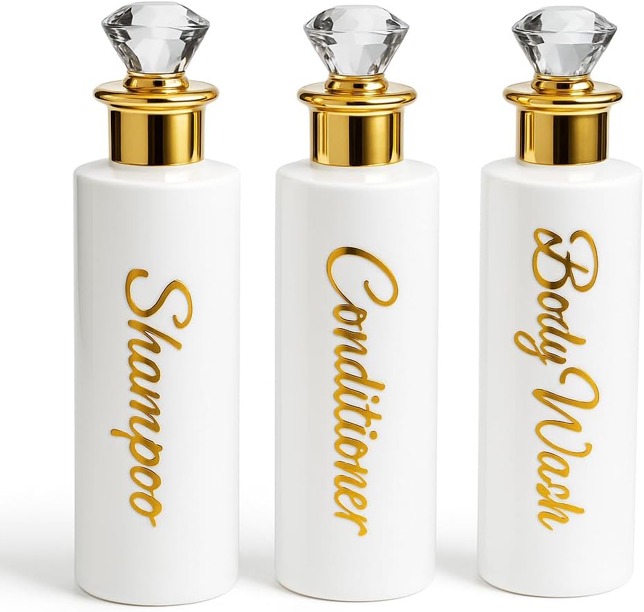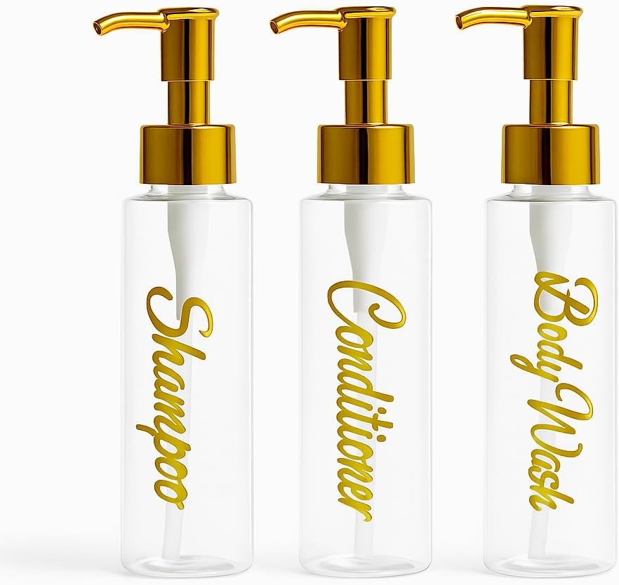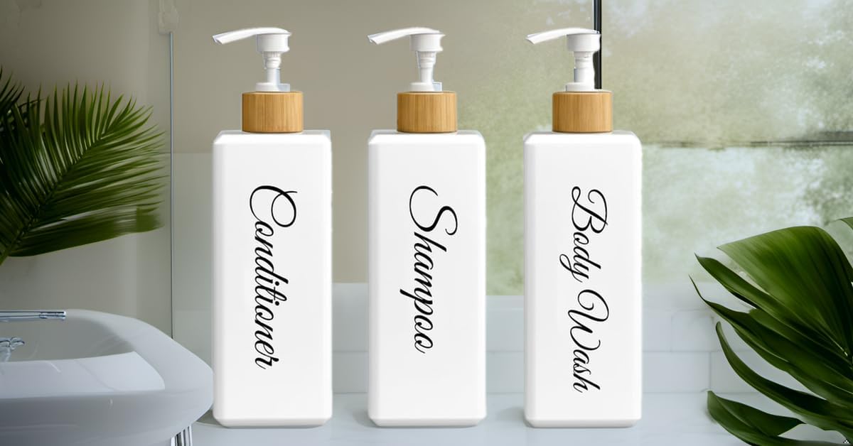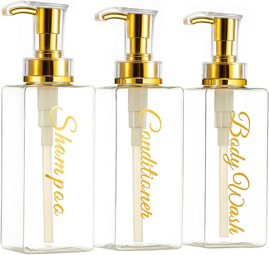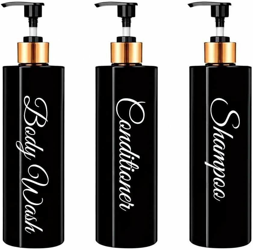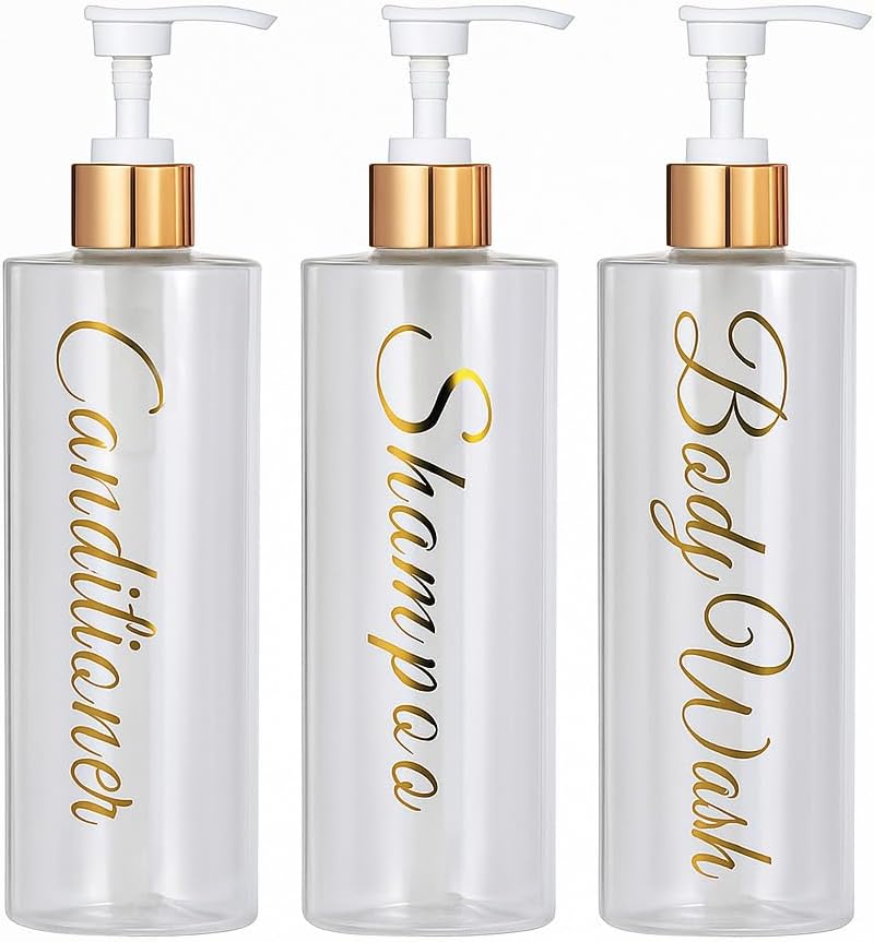 | Included Components | 3 x Bamboo/Gold Cap (check variations), 3 × 500ml dispensers (Shampoo, Conditioner, Body Wash) in stylish script labelling, Bottles |