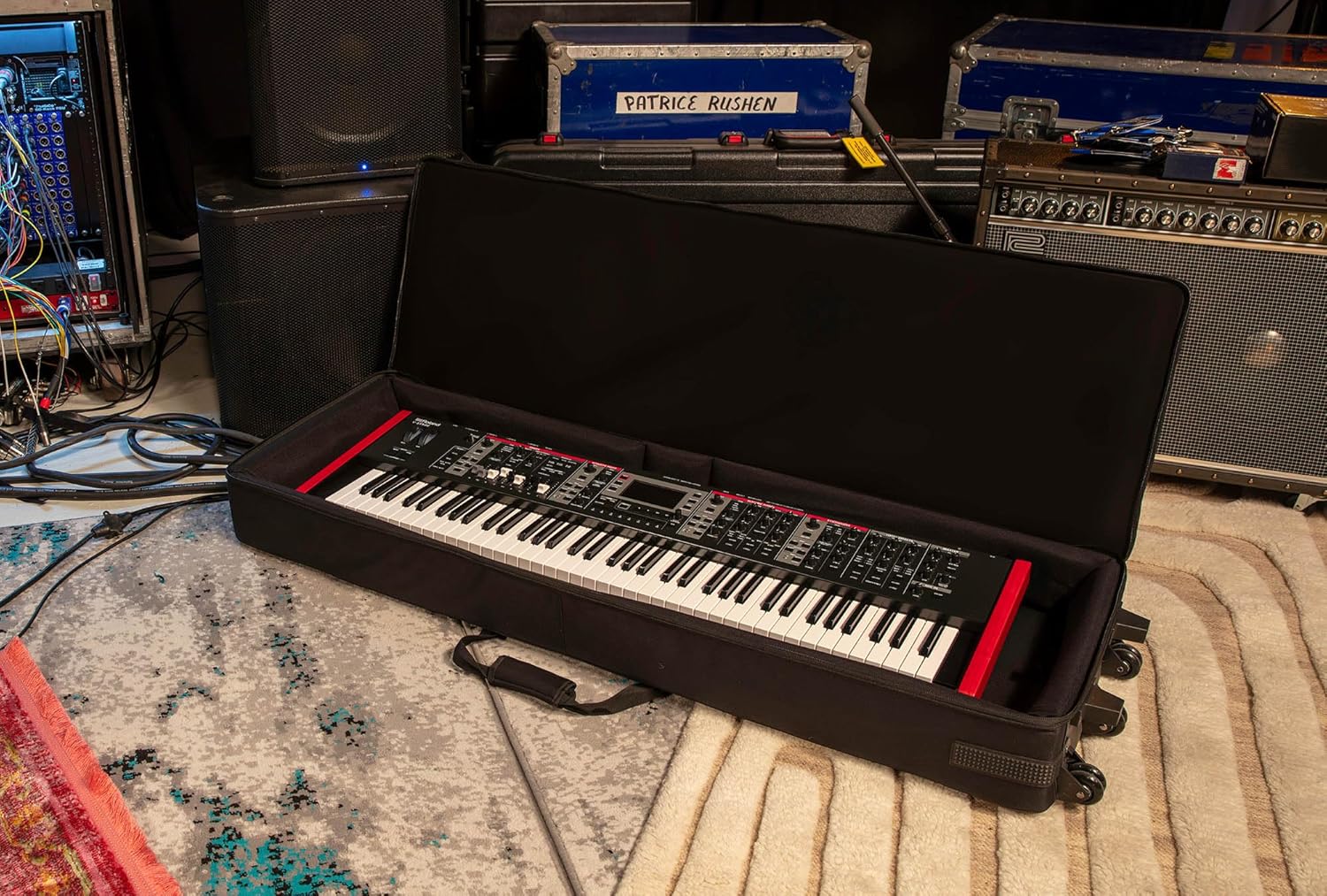 The Roland V-STAGE is a professional gigging keyboard with four advanced sound engines for acoustic pianos, electric pianos, organs, and over 400 ZEN-Core tones, expandable via Roland Cloud with vintage synths like the JUPITER-8 and JUNO-106. Powered by V-Piano and virtual tone wheel technologies, it offers deep customization with piano designer tools, tone-shaping, and effects like delay, reverb, compressors, and EQ. Its intuitive interface features a 4.3-inch color LCD, dynamic LED knobs, and seamless control of 512 scenes, 128 scene chains, and EX scenes for smooth transitions with scene remain and ample polyphony. USB-C connectivity supports integration with computers, mobile devices, and Apple MainStage, while balanced outputs, sub outputs, and mic/stereo inputs offer flexible I/O options. Available in two models, V-STAGE 76 and V-STAGE 88. The V-STAGE 76 model features a newly developed 76-note semi-weighted keyboard with refined velocity detection and a waterfall feel for classic organ moves like glissandos and rakes. Keyboard: 76 keys with waterfall semi-weighted keyboard and channel aftertouch Scenes: 512 Scene Chains: 128 Effects: Multi-effects: 16 systems, 93 types; Chorus: 9 types, Reverb: 7 types External memory: USB flash drive Controllers: Assignable wheel x 2, assignable switch x 2 Display: Graphic LCD 4.3 inch Power consumption: 30W Accessories: Owner's manual, power cord Dimension (WxDxH): 46.5x13.5x4.3 inches Weight: 33.5 pounds Austin Bazaar appreciates your purchase by adding essential accessories. This bundle contains an adjustable stand for stability, a bench for comfortable playing, a sustain pedal to help sustain notes, and a dust cover for protection. Additionally an Austin Bazaar instructional video is provided to offer tips and guidance while you learn, along with a polishing cloth to keep your instrument in mint condition.