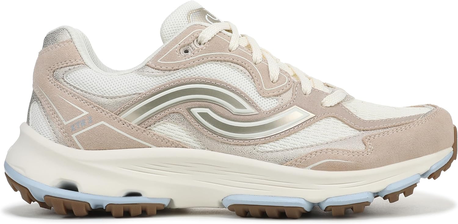 Your new favorite women’s hiking shoes. Adventure on in our best-selling Devotion X sneaker with a trail-ready tread outsole and retro-inspired styling. BEST FOR: Trail walking + Hiking. PERFORMANCE TECH: RE-ZORB® responsive cushioning for shock absorption + impact protection underfoot. MATERIALS: Breathable mesh + Suede and synthetic stitched overlays + Padded heel for extra cushioning. CLOSURE: Secure lace-up front with textured laces. INSOLE: Anatomical insole for arch support + heel support and partially recycled EVA. MIDSOLE: ACTIVfoam™ EVA for soft cushioning + Built-up cushion in the midfoot for stability. OUTSOLE: Durable rubber sole + Tread pattern with grip suitable for trail traction + Built-in compression channels for shock absorption. WEIGHT: 296 g/10.5 oz per shoe. HEEL-TO-TOE DROP: 10 mm.