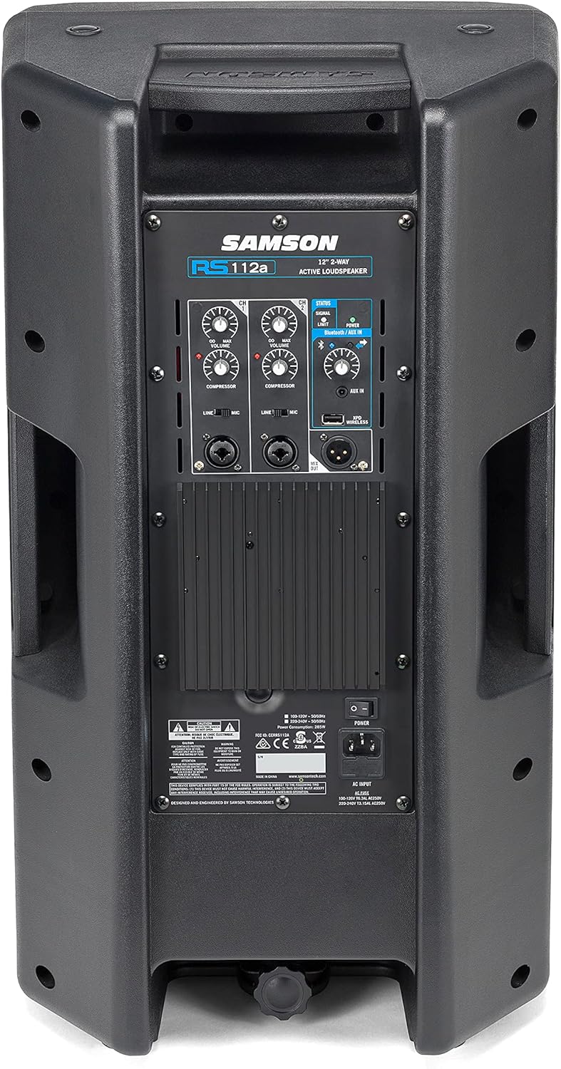 The Samson RS112A 400W 2-Way Active Loudspeaker offers powerful, versatile and convenient sound reinforcement to a wide range of audio applications. Easy to transport and set up, this powerful speaker features an onboard mixer with mic/line input options, Bluetooth® audio streaming, plus a USB Wireless port for connecting Samson XPD Series wireless microphone systems.