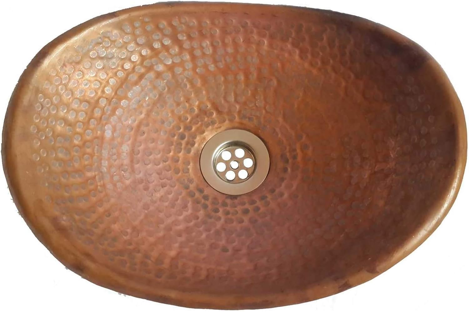 Size: 13X10X4 inches. Shown drain cover is not included. Imperfections to be expected due to hand making.Copper has the best combined properties of any other metals as it is durable, recyclable, earth friendly, natural and reusable. Copper has been used for buildings, bridges, weapons, decorative jewelry and hand tools for long time through history. Copper is highly sensitive to heat conduction, spreads heat evenly and saves energy. p> Copper reacts with various elements through time. Natural copper oxidation will add beauty to any decor. Enamel clear wax will help to minimize the oxidation process. Copper maintenance includes avoiding water spots and using soft cloth and regular water to clean copper surface. Our copper bathroom sinks products are lead and mercury free, eco-friendly and green solution to implement the practices that will lead to healthier living for the planet and our future generations. We do not use recycled copper to hand make our copper sinks. We use pure, virgin unsealed copper.Our sinks come with a connecting ring that acts as an interface between the rounded bottom of the basin and the flat counter top for easy installation. It serves both as the drain opening as well as the anchoring mechanism that holds the sink in place on the counter top. A mounting bottom ring is not necessary and may be added for additional sink security.