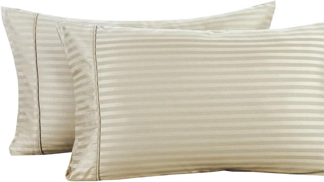 ENJOY THE BEST OF BOTH WORLDS! COTTON-POLYESTER BLENDED PILLOW CASES SET COLLECTION!Our Striped 650 Thread Count, Cotton-Polyester Blend, Wrinkle-Resistant, Bed Pillowcases Set Includes 2-Pillowcases. These Linens come in Sizes (Standard/Queen, King) and Several Natural Toned Striped Colors that will make YOUR BEDROOM POP! This Pillow Covers Set is PERFECT for YOUR GUEST ROOM, KIDS ROOM or for any Bed Set You have (Cabin, Vacation Home, Cottage ...etc)These Pillow Cases are made from 70% Cotton and 30% Polyester Sateen woven at 650 thread count and have a wrinkle-resistant treatment so they come out of the wash looking crisp and clean. 30% Polyester was added to make these More Wrinkle Resistant because 100-Percent cotton Cases will wrinkle after washing!Our Team of Specialists Inspect The Pillowcases to ensure You Receive The QUALITY YOU DESERVE! You are guaranteed BLISSFUL Nights of SLEEP with a SILKY SMOOTH FEEL of this Amazing Cotton Blend Pillow Case Set. ALSO, You can ORDER ADDITIONAL SHEETS matching the Pillowcases*ORDER NOW and LAVISH YOURSELF in SOFTNESS and COMFORT, BRINGING BEAUTY to YOUR ROOM!! NOTE: Due to different screen displays, the color of the actual item may vary slightly from the above images. But No Worries! Our Customer Satisfaction is 100% Guaranteed!!