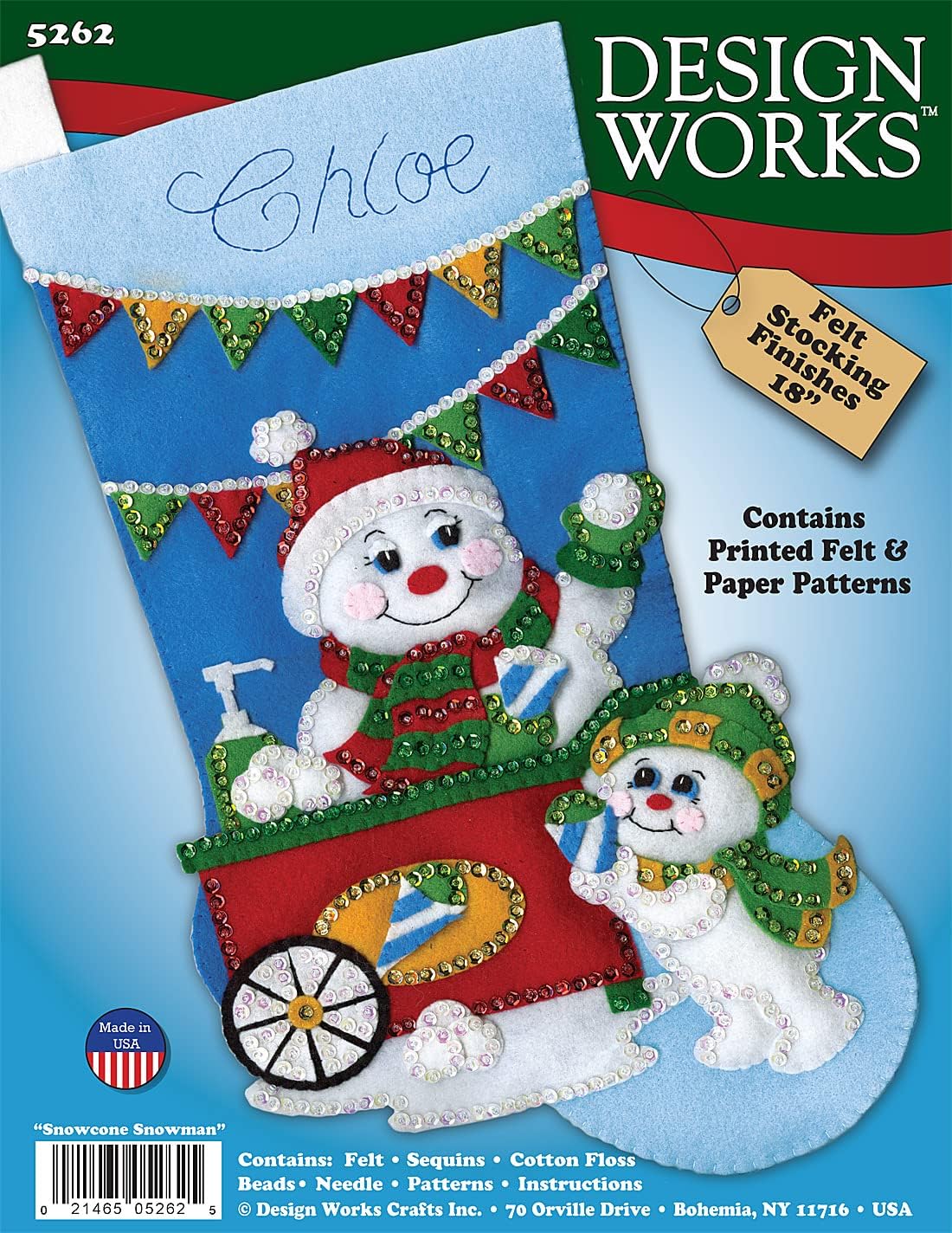 Christmas Felt Stocking Kit Includes 100% Acrylic Felt, 100% Cotton Embroidery Floss, Sequins, Beads, Trims, Needle, Fully Illustrated Instructions & Patterns. Finished Size 18"