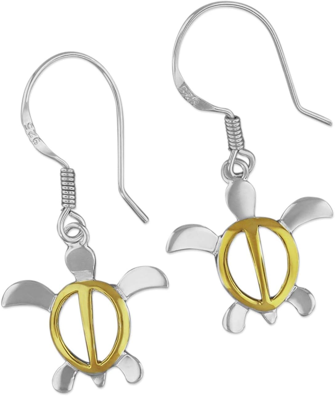Simple sterling silver honu (turtle) dangle earrings with French wire backing. Matches any of our honu pendants. Turtle measures 9/16 inch (0.56 inch) tall and 5/8 inch (0.63 inch) wide.Please note, the picture shown is not a true depiction of how large/small the items is. Please refer to the measurements for accurate size. Mahalo~