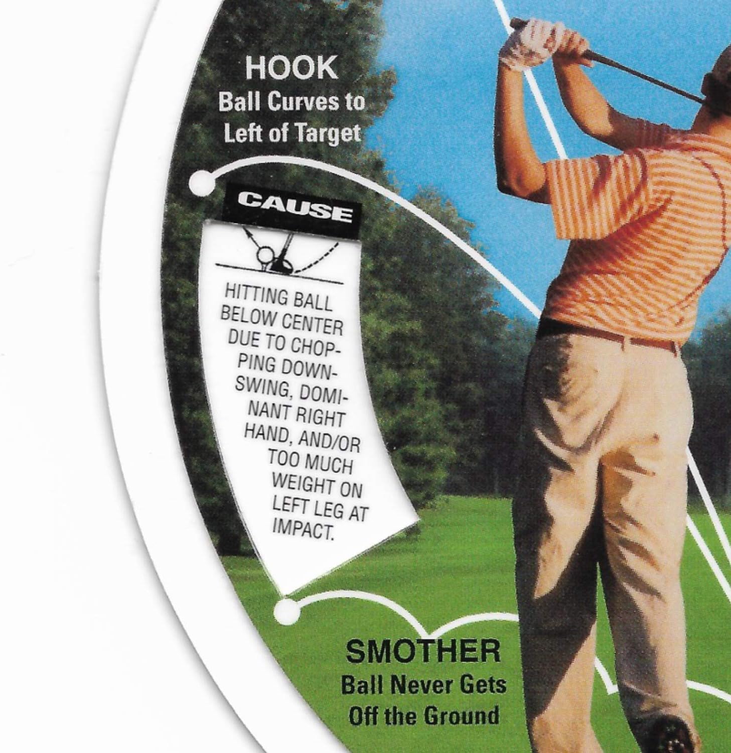 Simple solutions to nagging swing issues with the turn of a dial. A 2 sided Information Wheel with tips on how to improve your golf swing. Easily access answers with the simple turn of a dial. One side of the wheel shows the Cause and the Correction for 9 common Problem Shots; fade, slice, hook, etc. The other side shows fixes for 18 Problem Lies, such as heavy rough, sand trap, uphill lie, etc. There's a ballchain at the top that allows you to attach the wheel to your golf bag and dial up solutions to problems as they arise. Water resistant.