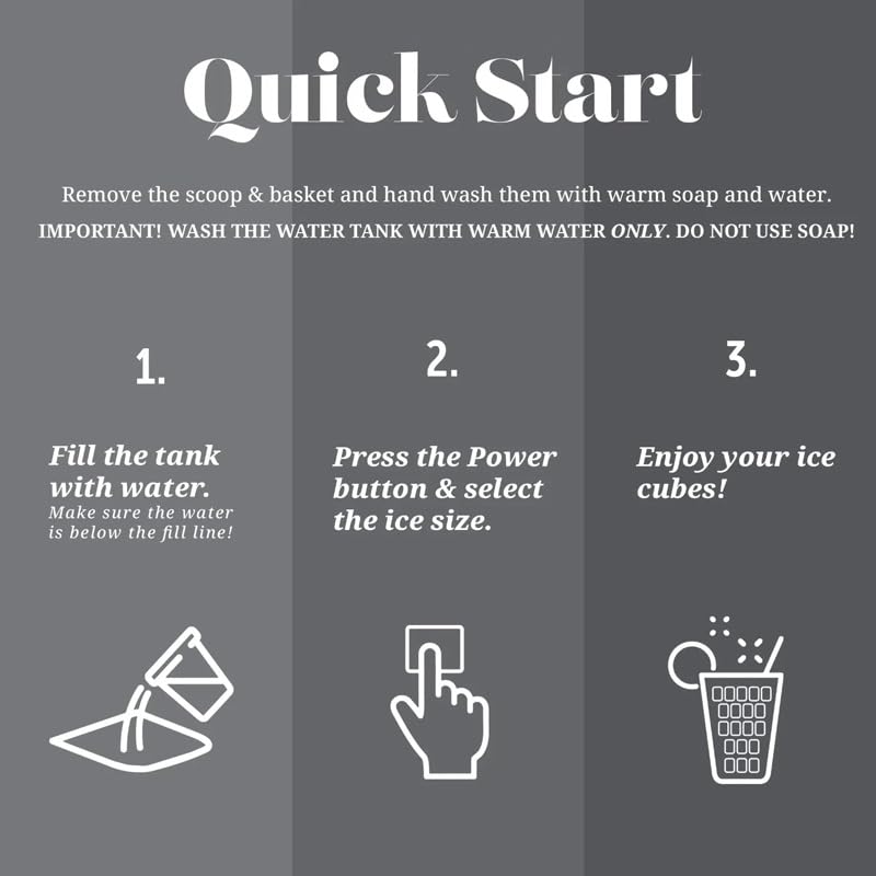 • The automatic cleaning makes the The Countertop Ice Maker easy to use and maintain.