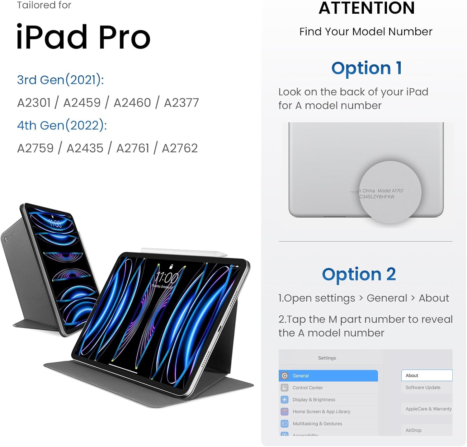 | Compatible Devices | 11 iPad Air M2 2024 & iPad Pro M2&M1 (not M4) and 10.9-inch iPad Air 5th/4th |
