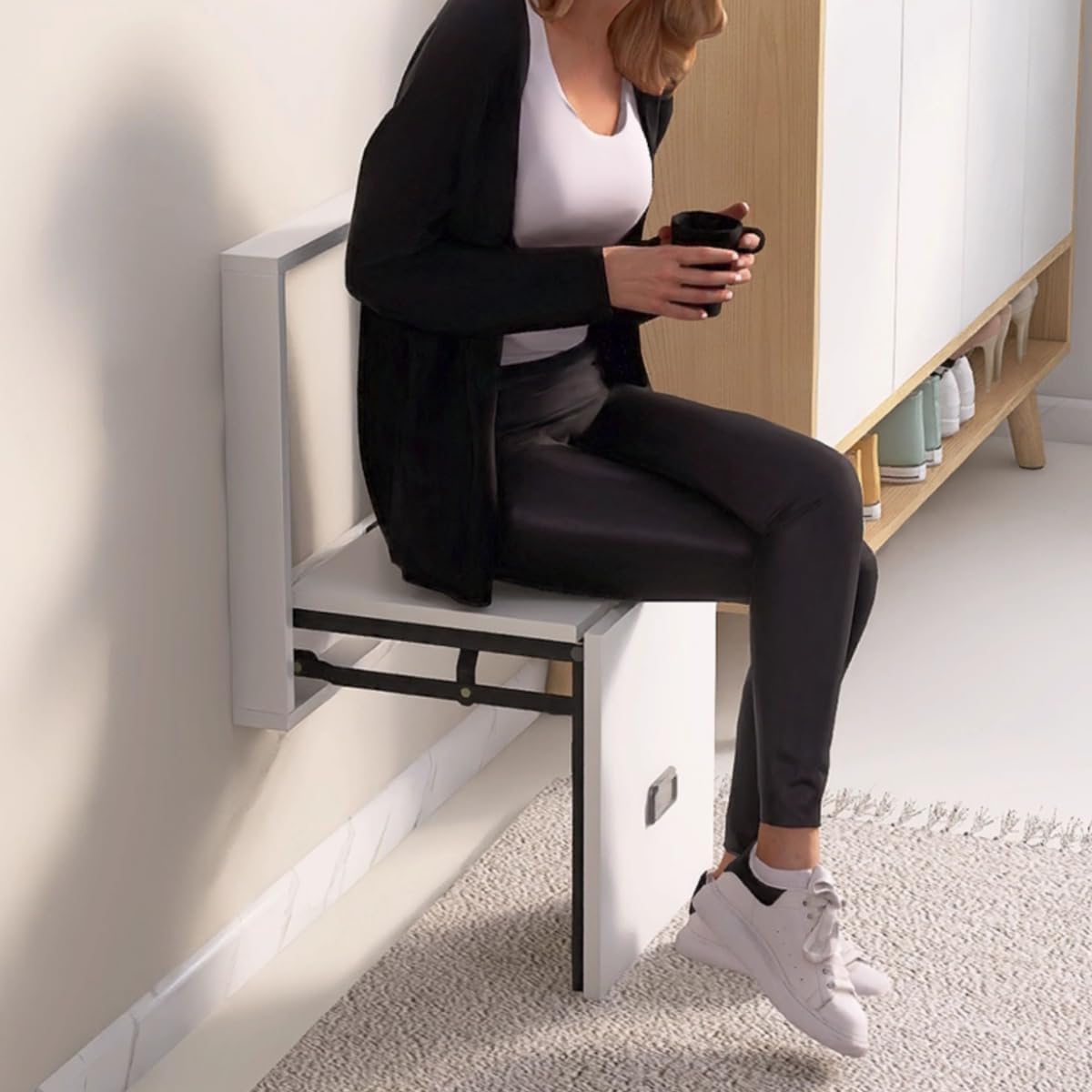 Item Name: Wall Mounted Foldable Shoe Changing StoolMaterial: Solid WoodFeature: Experience space-saving elegance with our sturdy, retractable design. This invisible wall stool is foldable, durable, and perfect for small spaces.Applicable scenarios and occasions: Ideal for entryways, living rooms, and mudrooms catering to families, elderly, and children.Style/Appearance: Sleek, modern design that seamlessly blends into any decor.Origin: China.