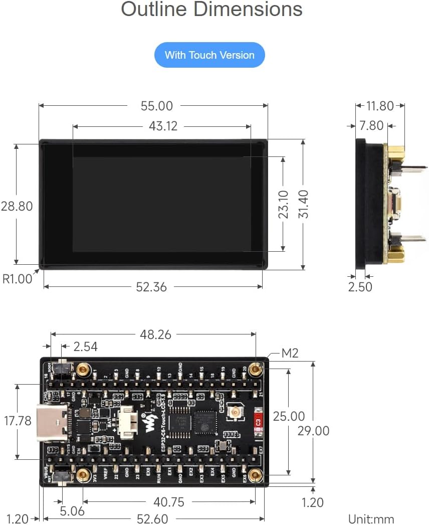 ESP32-C6 1.9inch Touch Display Development Board, 170×320 Pixels, 262K Color, 160MHz Running Frequency RISC-V Single-Core Processor, WiFi 6 & Bluetooth, Supports 90° Hardware Rotation, ESP32 With Display Features This product adopts ESP32-C6FH8 chip with 2.4GHz Wi-Fi 6 and Bluetooth BLE 5 support, integrates 8MB Flash. Onboard 1.9inch LCD display which can smoothly run GUI programs such as LVGL. Onboard QMI8658 6-axis IMU, TF card slot, Lithium battery header, etc. Compatible with Pico header, offering strong compatibility and expandability. It is suitable for the quick development of the HMI and other ESP32-C6 applications. Equipped with a high-performance 32-bit RISC-V processor with clock speed up to 160 MHz Supports 2.4GHz Wi-Fi 6 (802.11 b/g/n) and Bluetooth 5 (LE), with an onboard antenna Built-in 512KB HP SRAM, 16KB LP SRAM, and 320KB ROM, integrates 8MB Flash Onboard 1.9inch LCD display, 170 × 320 resolution, 262K color, delivering clear and vivid color image display Onboard QMI8658 6-axis IMU (3-axis accelerometer and 3-axis gyroscope) for detecting motion gestures, counting steps, etc. Onboard USB Type-C port for power supply, program downloading, and debugging, more convenient for development use Onboard 3.7V MX1.25 Lithium battery recharge/discharge header Onboard TF card slot for external TF card storage of pictures or files Compatible with Pico header, onboard multiple peripheral interfaces, offering strong compatibility and expandability LCD Parameters DISPLAY PANEL---LCD DISPLAY SIZE---1.9 inch RESOLUTION---170×320 DISPLAY COLORS---262K BRIGHTNESS---500 cd/㎡ CONTRAST RATIO---900:1 COMMUNICATION INTERFACE---SPI DRIVER IC---ST7789V2 TOUCH IC---CST816 (Touch Version Only) Package Content ESP32-C6-Touch-LCD-1.9 x1