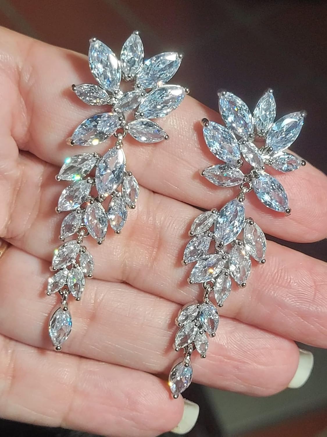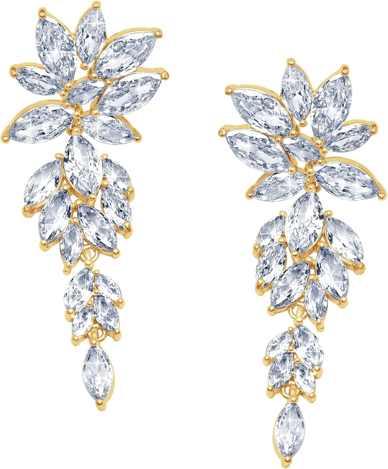 DIAMANTIO Wedding Earrings Elegant Statement Dangle Drop Dangling CZ Marquise Cubic Zirconia AAAAA 18K Gold Plated Rhinestone Luxurious for Brides Bridal Wedding Women Precious Crystal