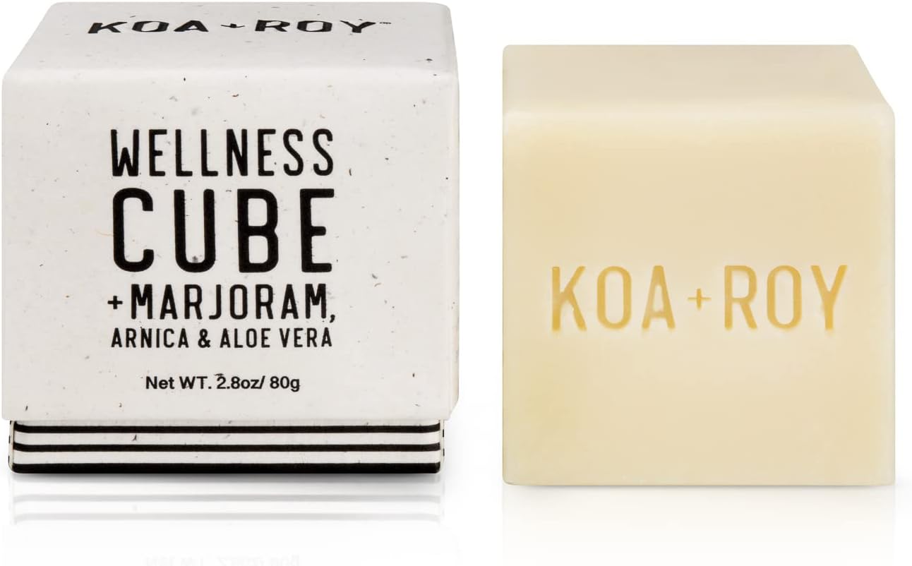 Take your skincare routine to the next level with the KOA+ROY Wellness Cube. Sometimes we forget to make time for our daily body-care routines and that's why we made something quick, effective, and easy for you! Wellness Cube is an all-natural way to help your body relax while softening your skin. Our powerful blend of botanicals and essential oils uses aromatherapy to provide a soothing and relaxing experience leaving you energized for the rest of the day. Directions: Massage the cube on your skin until the desired amount of oil is released. Use the cube to work into those sore muscles and joints, concentrating on the painful and swollen areas. You can also ask your loved ones to help you massage those hard-to-reach spots. Portable enough to be taken anywhere— Repeat as needed.