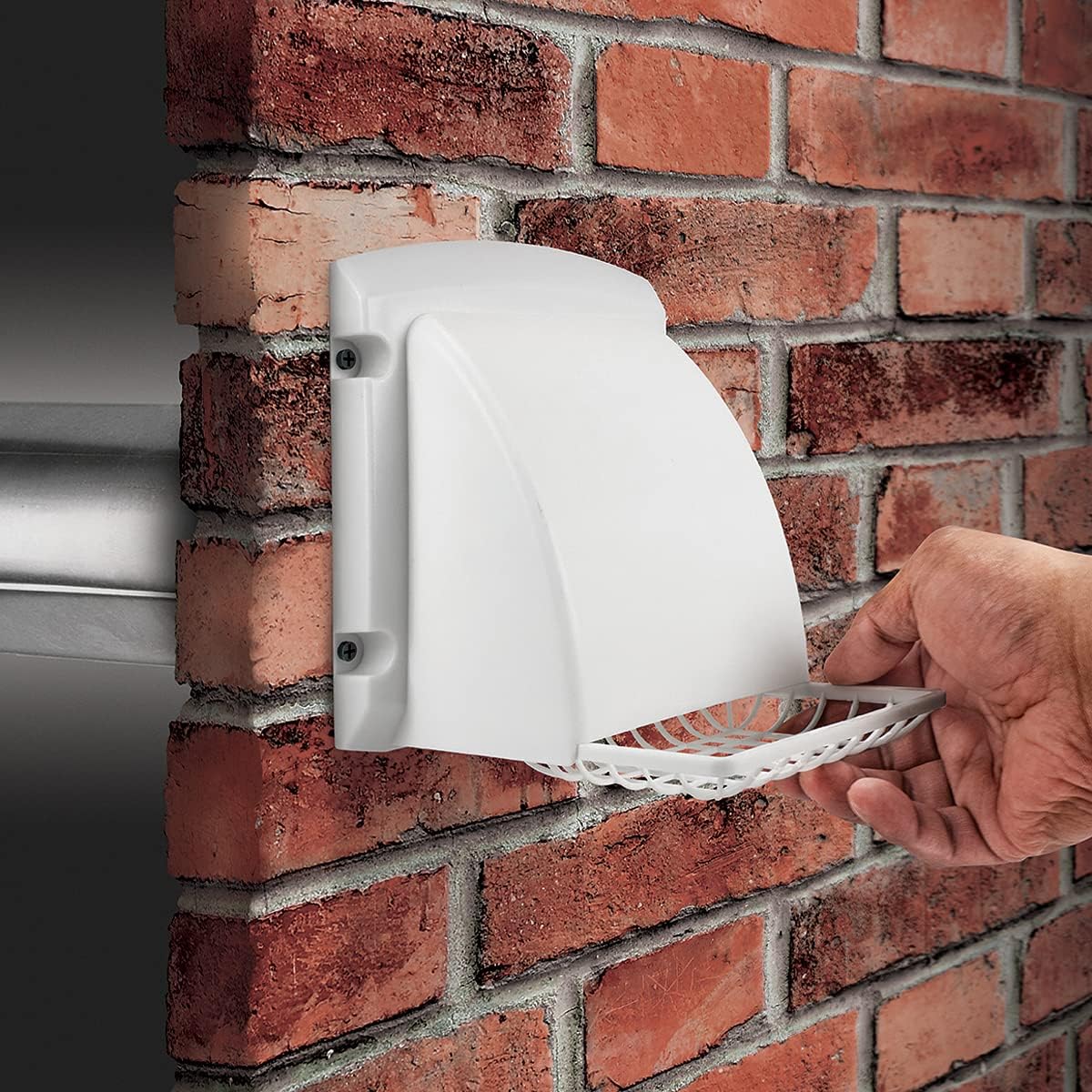 Product Description Professional series dryer vent kit for exhausting gas and electric clothes dryers. Includes (1) 4" wide mouth cap with 4" diameter aluminum pipe (cap is equipped with removable pest screen designed to keep birds and other pests from burrowing in dryer exhaust vents), (1) 4" diameter x 8' long ProFlex transition duct, and 2 plastic clamps with quick release, self-locking system. From the Manufacturer ProMax dryer vent kit. Includes 4-Inch by 8-Foot UL 2158A. Listed and marked transition duct 4-Inch by 8-Foot, 4-Inch ProMax exhaust hood, White and 2 plastic clamps. UV resistant coating on ProGard cap helps prevent plastic from discoloring. Back draft damper in cap has been designed for superior noise reduction. Cap is paintable to match the home's exterior. Comes with a removable pest screen for easy cleaning.