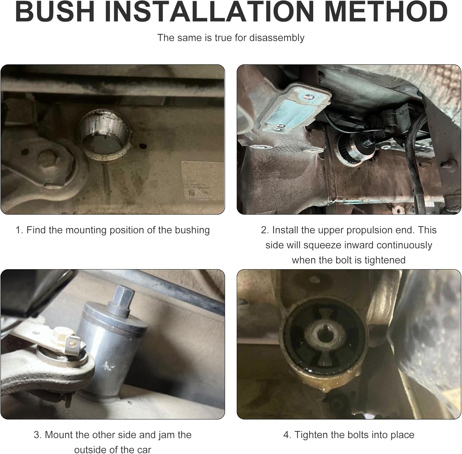Removal and installation of balljoints on the rear wheel carrier on: 5-Series: E39, E60, E61 and E70(X5) 6-Series: E63 and E64 7-Series: E38, E65, E66 and E67 8-Series: E31 Removal and installation of balljoints and rubber bearings on the longitudinal arms on: 3-Series:E36, E46 and E83 5-Series: E39, E60, E61 and E70(X5) 6-Series: E63 and E64 7-Series: E38, E65, E66 and E67 8-Series: E31 Z4: E85 and E86 Removal and installation of rear axle differential rubber bearings on lower axle carrier on: 3-Series:E36, E46 and E83 8-Series: E31 Z4: E85 and E86 Removal and installation of rear axle differential rubber bearings on: 1-Series:E81 and E87 3-Series:E36, E46, E83, E90, E91, E92 and E93 5-Series: E60 and E61 6-Series: E63 and E64 7-Series: E38, E65, E66 and E67 8-Series: E31Z4: E85 and E86MINI Cooper S: R53