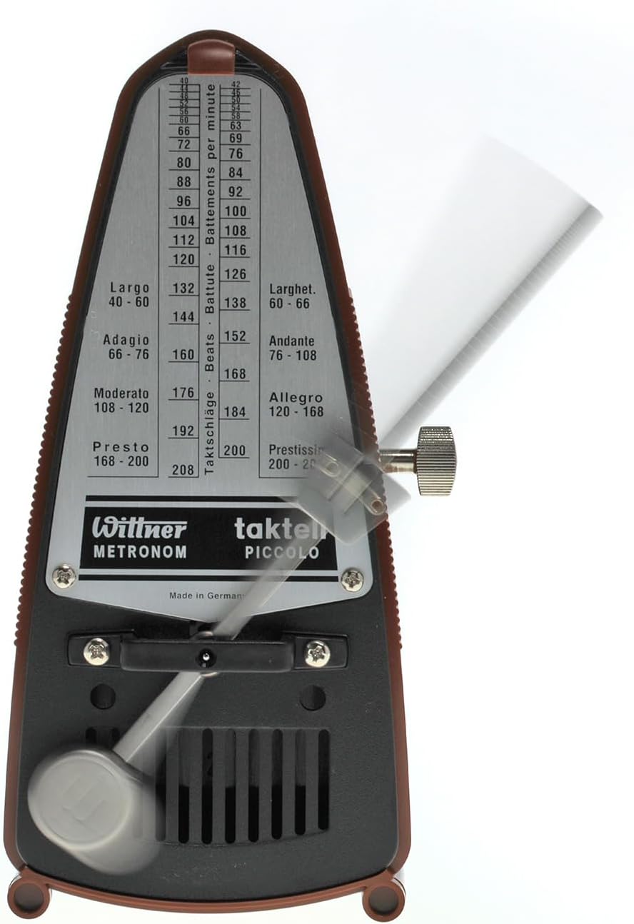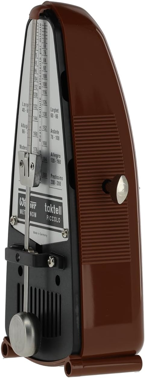 Wittner metronome taktell piccolo. Color: Mahogany-Brown. Plastic casing. Without bell. Dimension of metronome (H x W x D) 5. 9x2. 76x1. 97inches. Made in Germany.