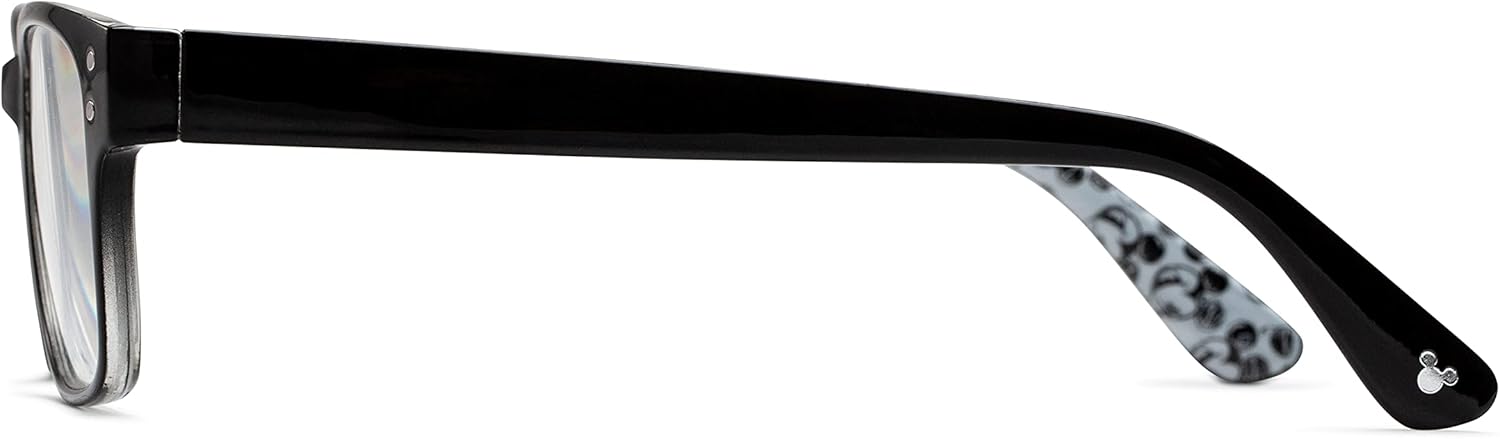 Iconic was created to appeal to the young-at-heart. This style features a solid color front with a timeless Mickey Mouse print on the inside of the temples that will guarantee to make you happy every time you put them on. Spring hinges and scratch-resistant lenses round out the details of this frame. A matching soft microfiber case is included with every pair.
