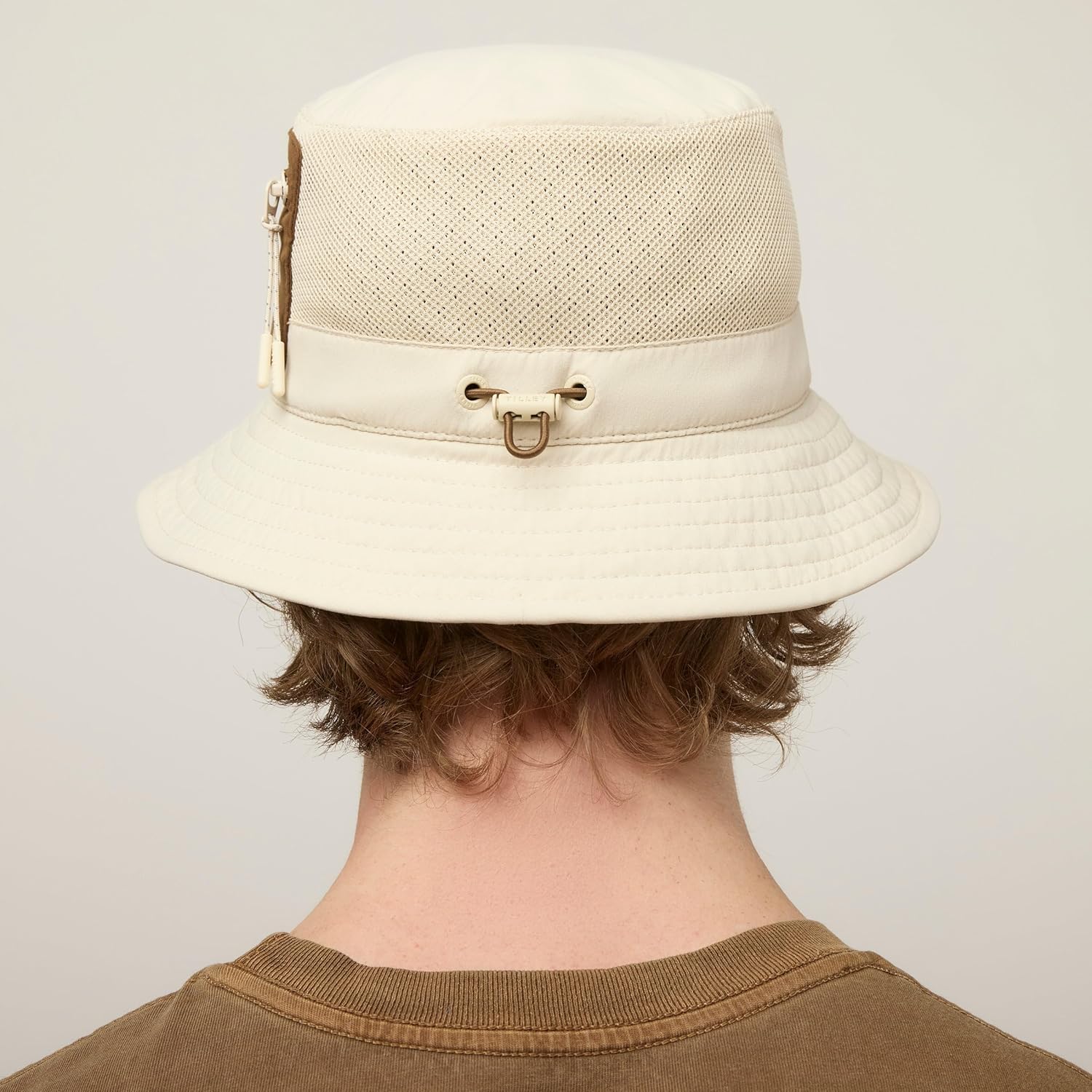 A tribute to our history of practical design, the Zip Pocket Bucket enhances our tradition of concealed storage, featuring not one, but two pockets. One discreetly placed under the crown, and another on the side, along with a DWR coating, UPF 50+ protection, and a ventilating mesh panel at the back, ideal for the minimalist adventurer who appreciates extra storage.